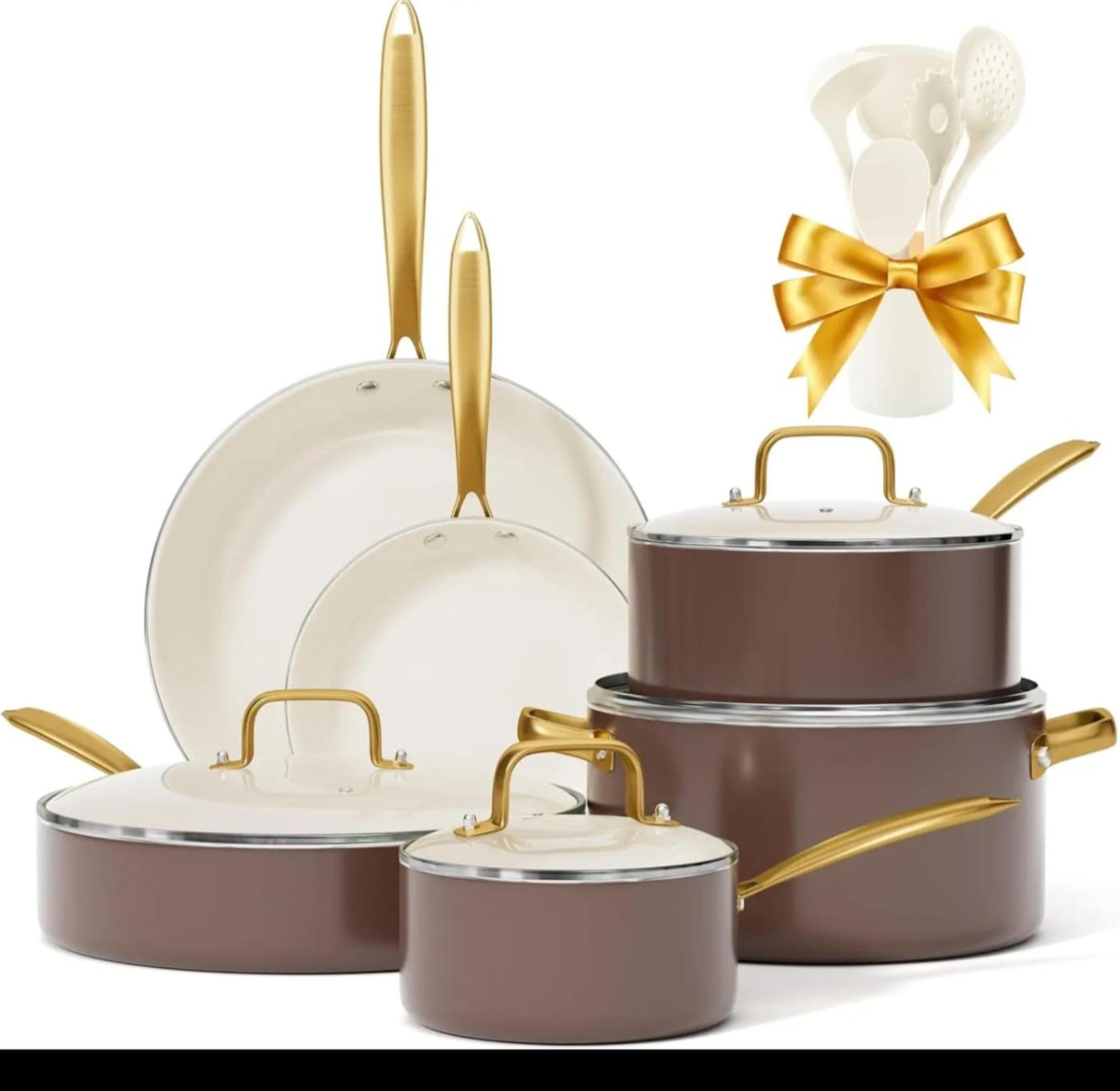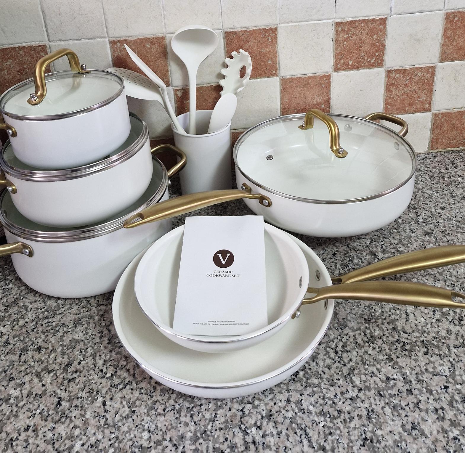 Upgrade your kitchen with this 15-piece premium cookware set, crafted for safe, non-toxic and efficient everyday cooking. The set is PFAS, PFOA, lead and cadmium-free, making it ideal for health-conscious homes across Kenya. It includes a full selection of cookware: 18cm saucepan with lid, 24cm saucepan with lid, 28cm casserole, 28cm sauté pan with lid, 24cm frying pan, 26cm frying pan, plus 5 silicone spoons with stand for easy meal preparation.
