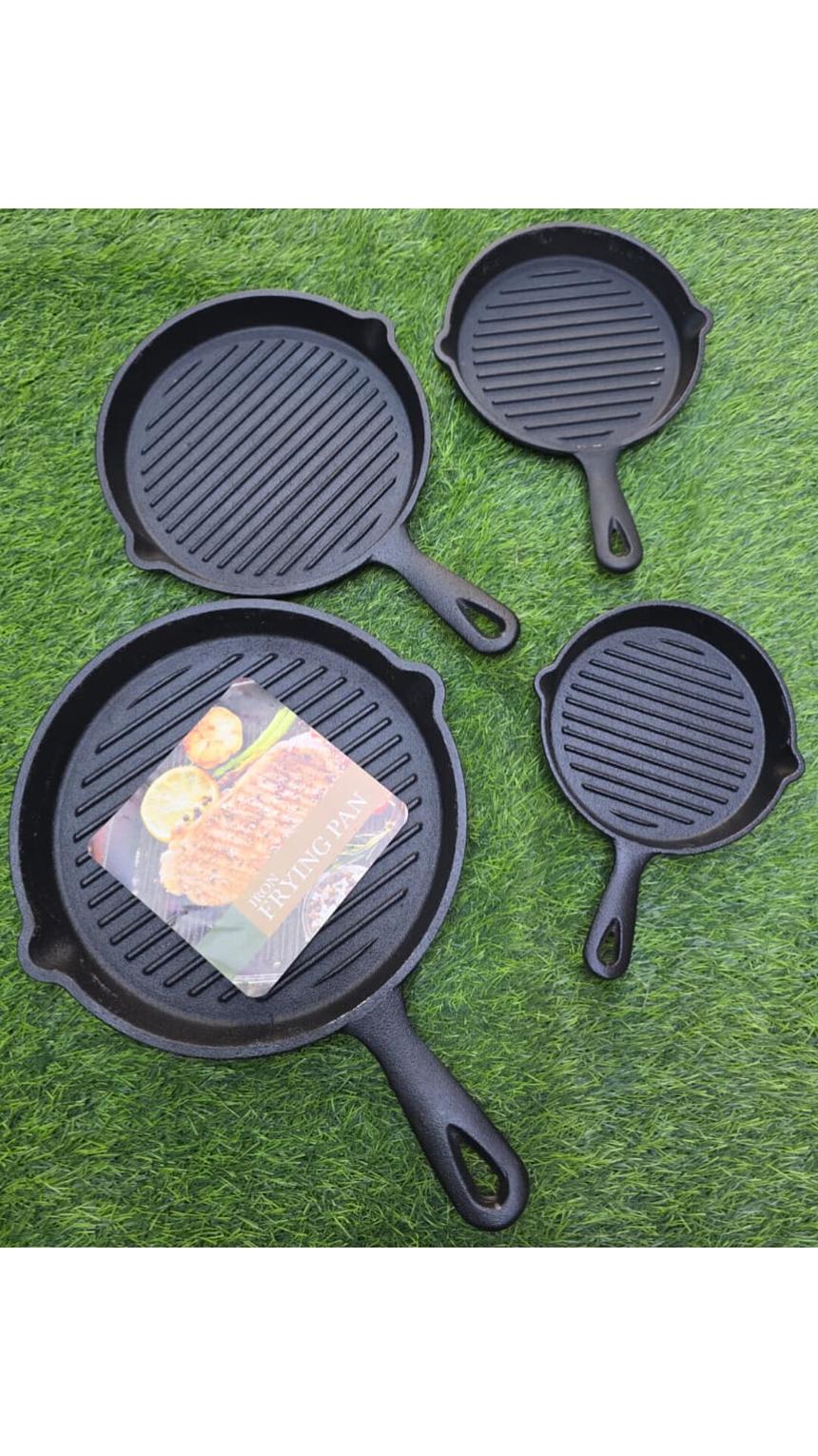 Cook like a pro with this 4-in-1 pre-seasoned cast iron skillet set, designed for superior heat retention and even cooking. The ribbed surface gives your food perfect grill marks while enhancing flavor, making it ideal for steaks, BBQ, fish, and more.