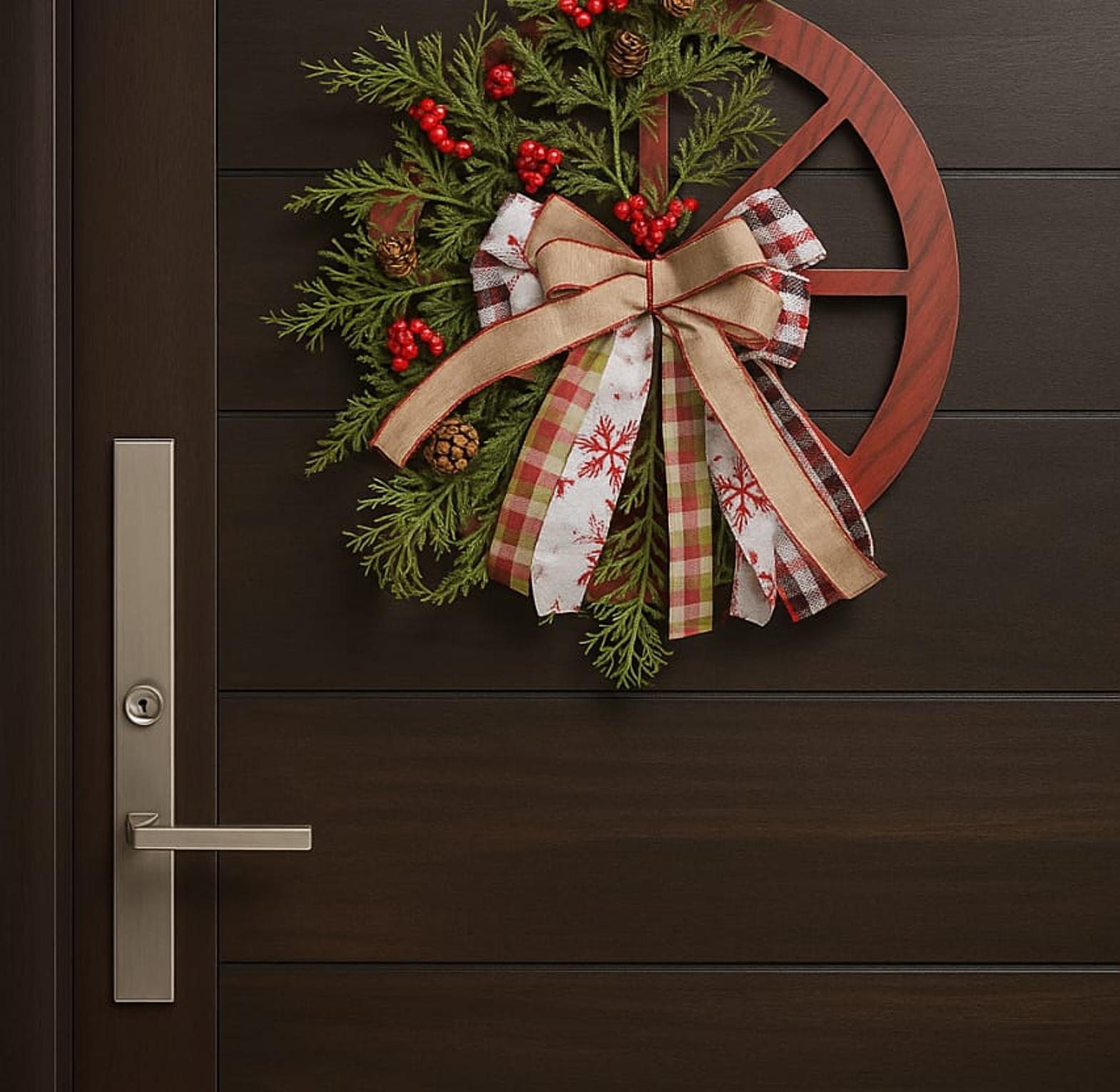 Celebrate the season with our 40cm Rustic Christmas Wagon Wheel Wreath, a stunning blend of traditional holiday colors and natural textures. Designed with twinkling greenery, red berries, pinecones, and rustic wood tones, this festive wreath adds cozy farmhouse charm to your door, wall, or fireplace décor. Its unique wagon wheel design makes it a standout piece that evokes warmth, nostalgia, and timeless Christmas traditions. Perfect for both indoor and outdoor decoration, this wreath instantly transforms any space into a holiday retreat full of joy and rustic elegance.