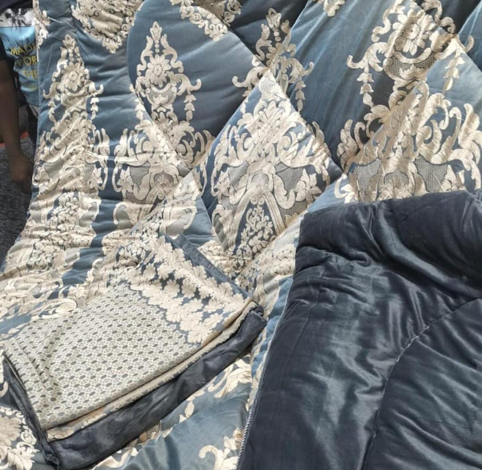 Transform your bedroom with this 6PC High Quality Heavy Silk Warm Duvet Set, crafted for both luxury and cozy comfort. Featuring a rich silk finish with an elegant patterned design as shown, this duvet adds a sophisticated touch to any modern bedroom.