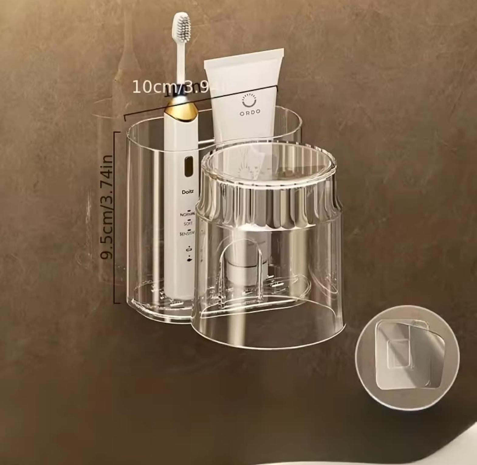 Upgrade your bathroom space with this modern acrylic toothbrush holder and rinse tumbler set. Designed for convenience and style, it features durable acrylic construction that’s both sturdy and easy to clean. The adhesive stickers allow for hassle-free wall installation, keeping your sink area organized without damaging your tiles. Perfect for holding toothbrushes, toothpaste, and daily essentials while adding a touch of elegance to your bathroom décor.