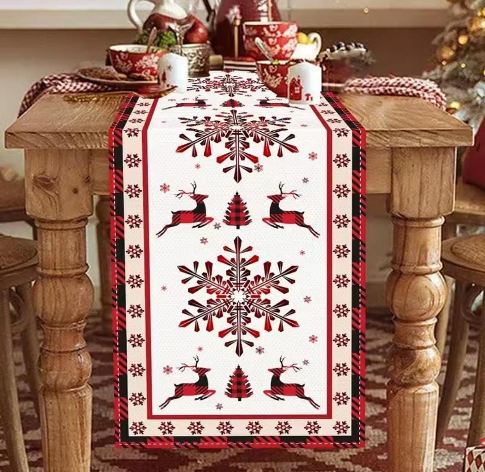 Transform your dining space with our Christmas-Themed Table Runner (33cm x 185cm) — the perfect blend of style, quality, and festive charm. Crafted from durable, easy-to-clean fabric, this runner features beautiful holiday-inspired designs that instantly elevate your table setting. Ideal for Christmas dinners, parties, and seasonal décor, it adds a cozy, elegant touch to any surface—whether used on a dining table, console, or coffee table. Celebrate the holidays in style and make every meal feel extra special.