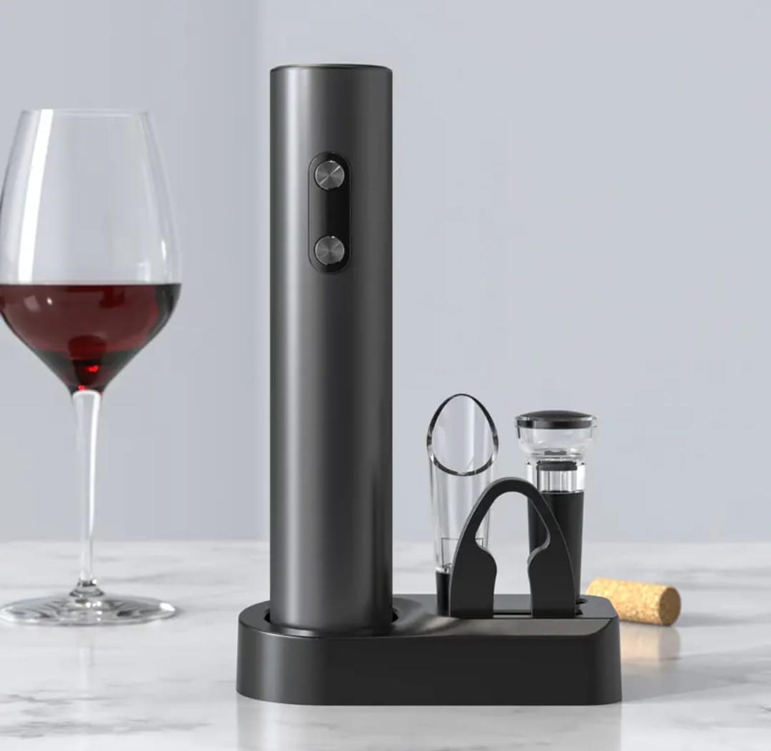 Upgrade your wine experience with the Electric Wine Bottle Opener Gift Set, designed for wine lovers who value elegance and convenience. This premium set includes an electric bottle opener, foil cutter, wine pourer, vacuum stopper, and a stylish base for easy storage and display. The powerful automatic opener ensures smooth uncorking at the touch of a button, while the vacuum stopper keeps your wine fresh longer. Ideal for home entertaining, gifts, or professional setups, this wine opener set combines modern design with functionality — perfect for Kenyan wine enthusiasts and gifting occasions.