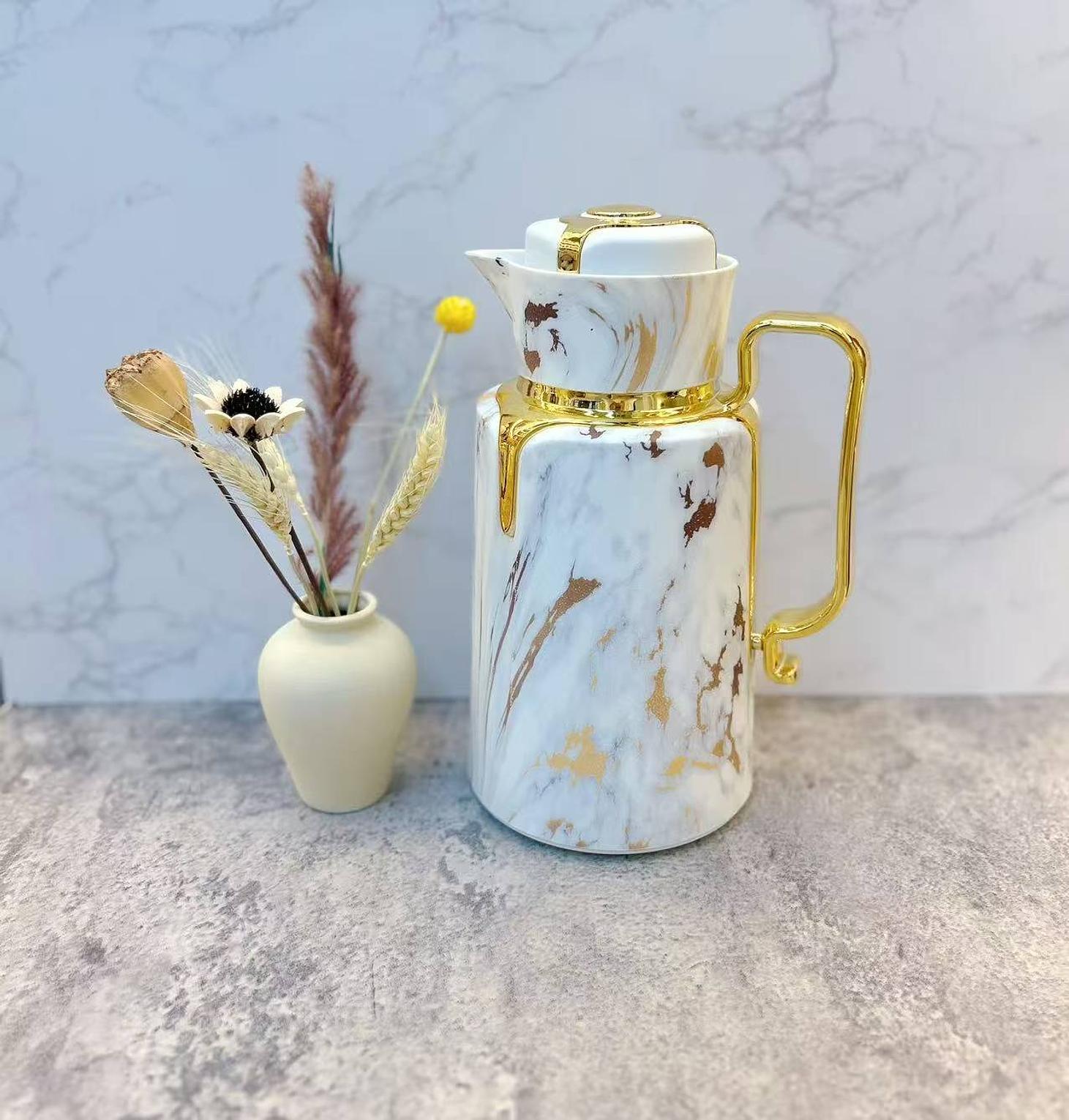 Elegant Marble Print Thermo Flask with Gold Accents – 1 Litre