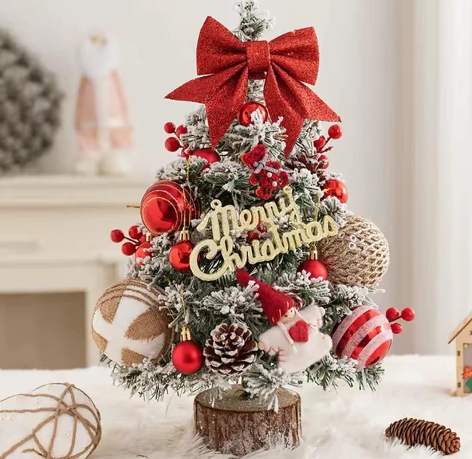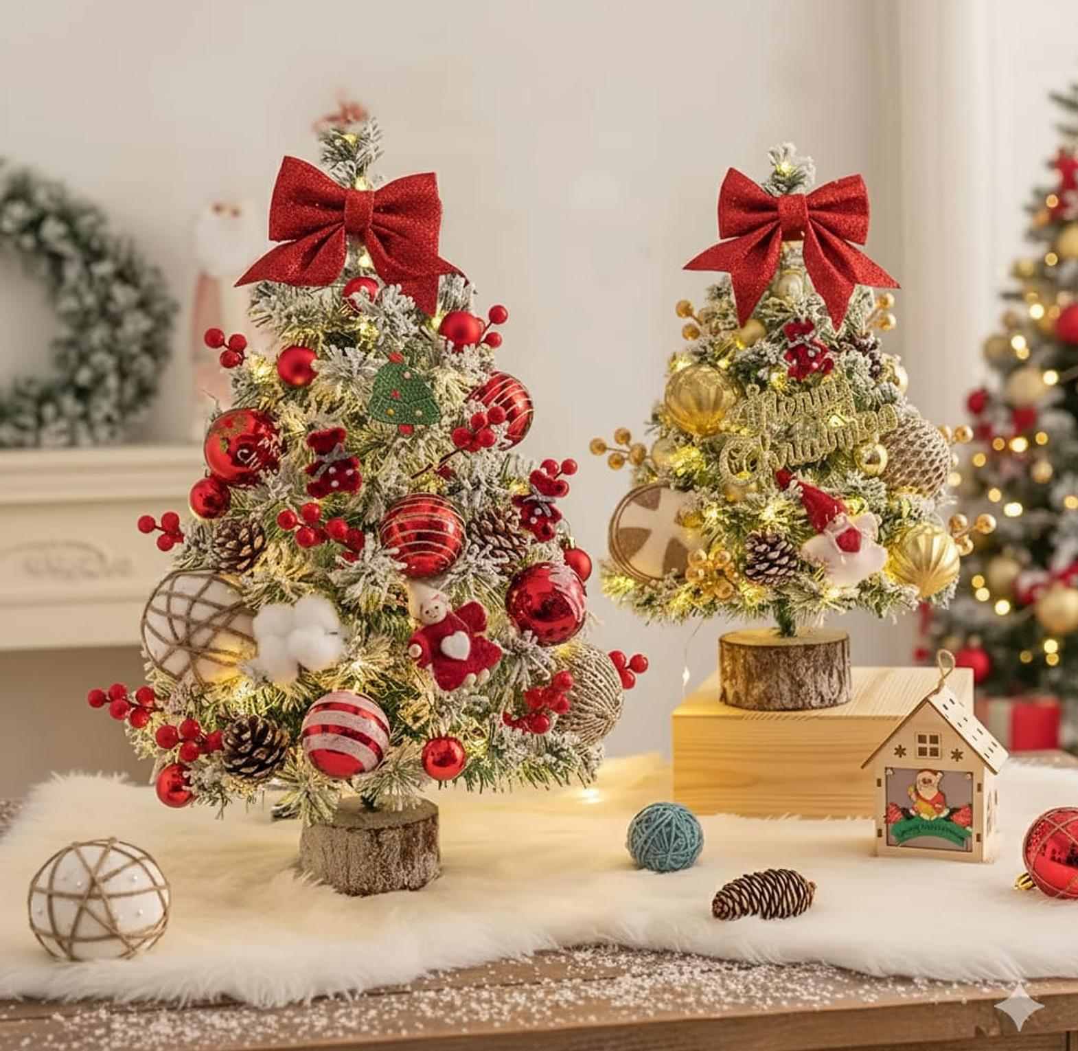Add a touch of festive magic with our Fully Decorated Tabletop Christmas Tree, beautifully crafted with built-in lights, glittery bows, and colorful ornaments. Set on a rustic wooden base, this compact yet charming Christmas tree brings the holiday spirit to any setting—whether it’s your home, office desk, restaurant table, or entryway. No setup required—just place it and plug it in for an instant warm glow. Ideal as a mini Christmas tree for small spaces or as a secondary festive centerpiece, it’s designed to spread joy and elegance throughout the season.