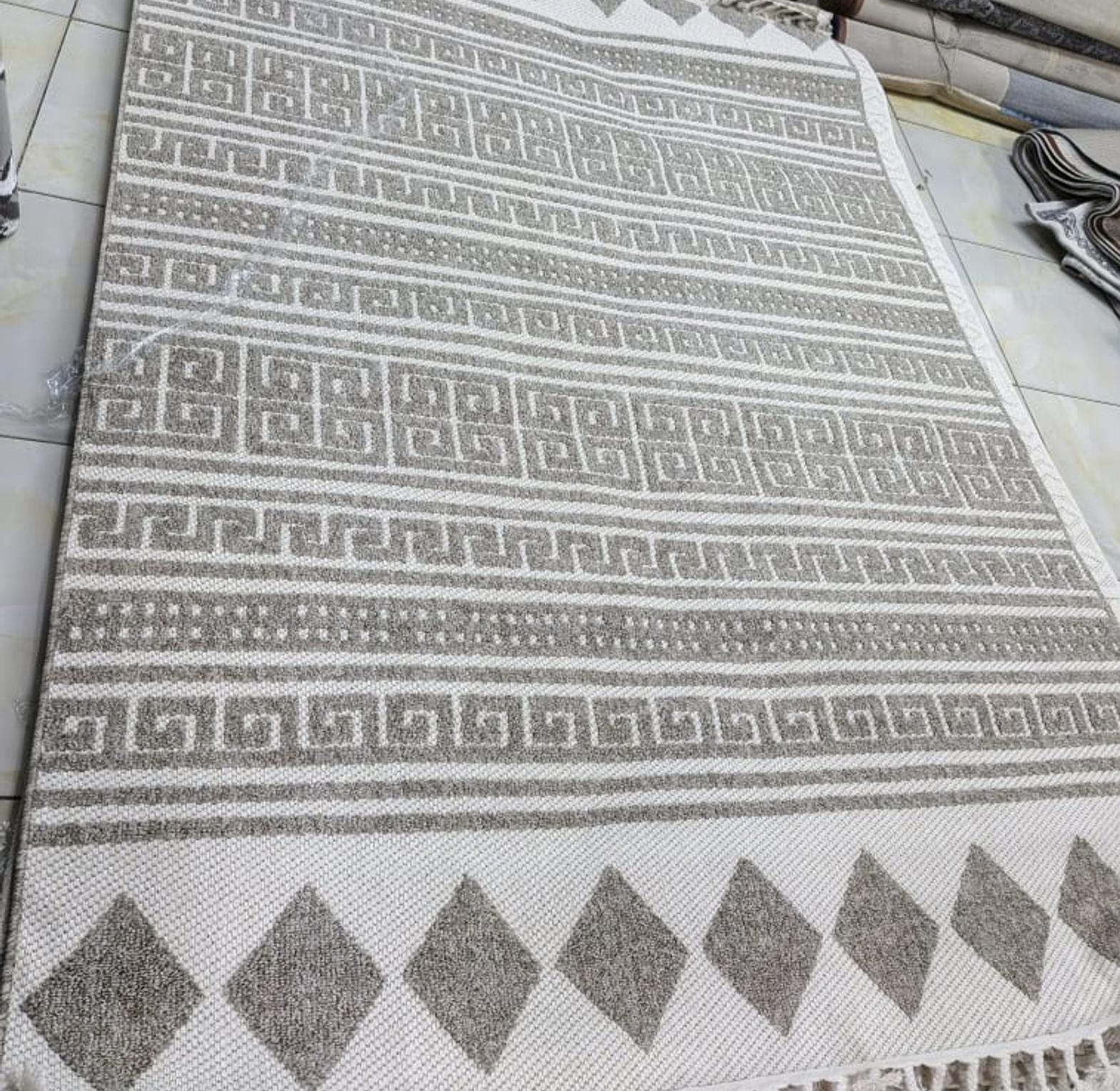 Enhance your home décor with this Handwoven Geometric Cotton Area Rug, beautifully crafted in neutral colors to complement a wide range of interior styles. Made from high-quality cotton, this rug features intricate geometric patterns and tassel detailing, offering both visual appeal and long-lasting durability. Its soft texture makes it ideal for living rooms, bedrooms, sitting areas, or entryways, adding a cozy yet stylish touch to Kenyan homes.