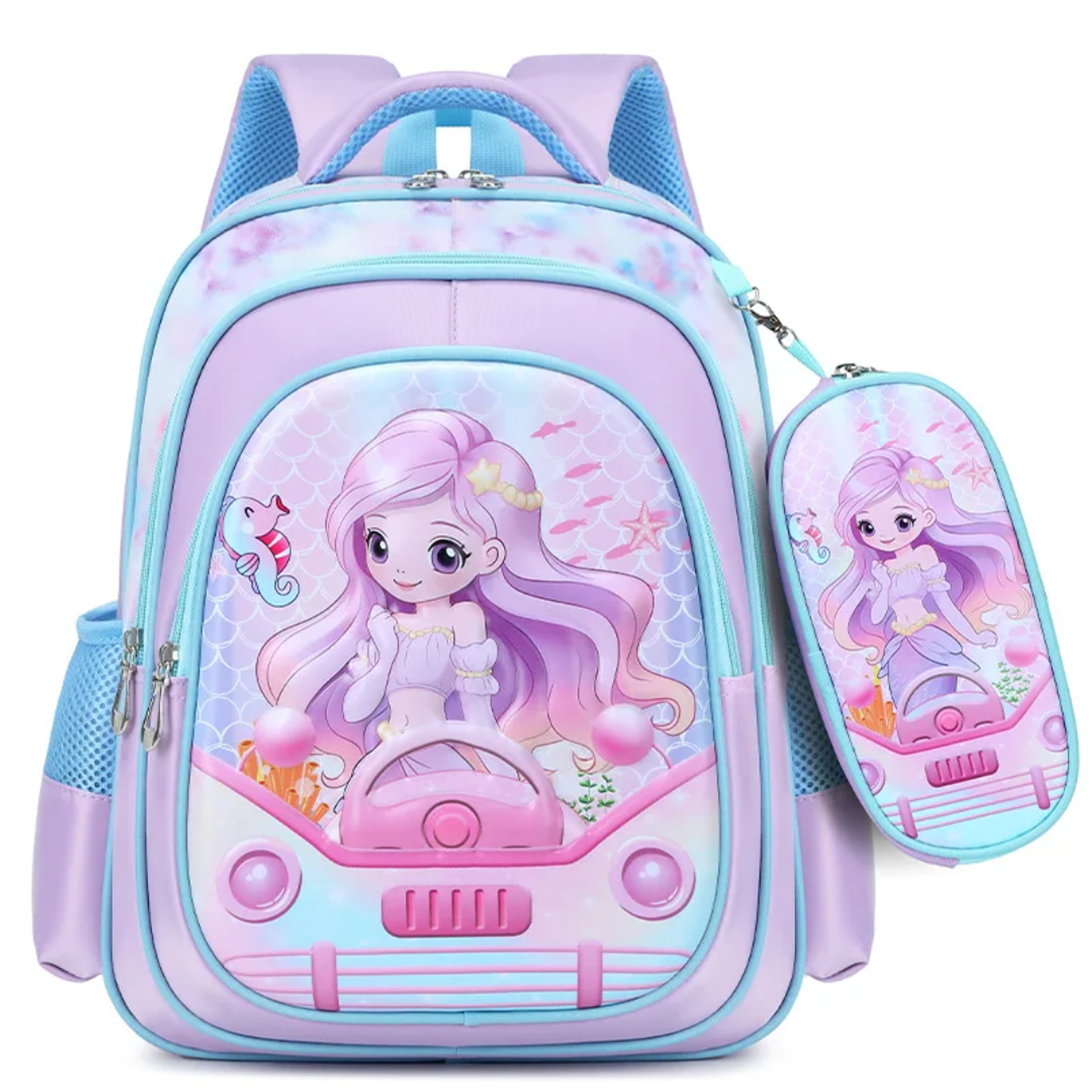 A fun and protective 3D cartoon school backpack set featuring a matching pencil pouch. Designed to be lightweight, waterproof, and supportive of healthy posture—perfect for grade 1 to grade 3 learners.