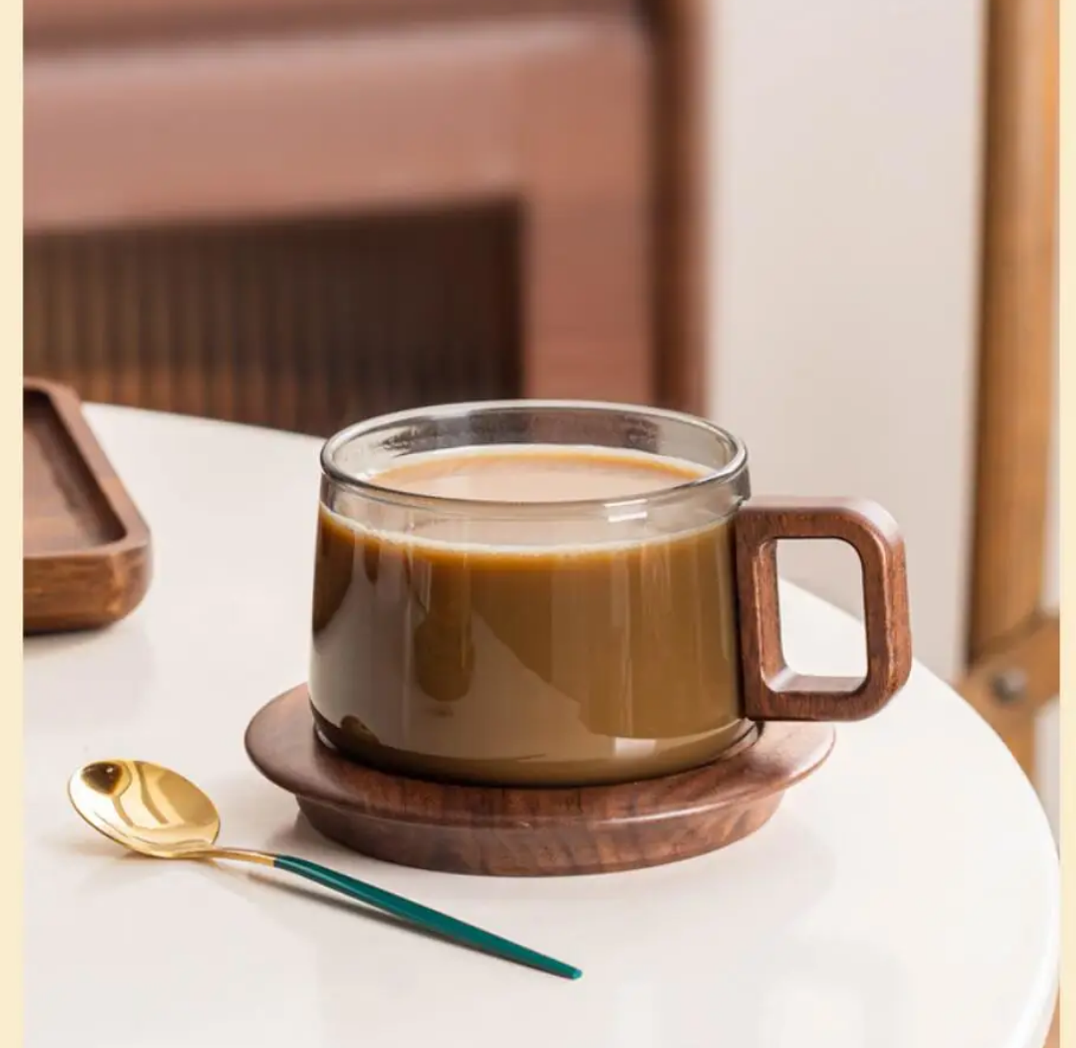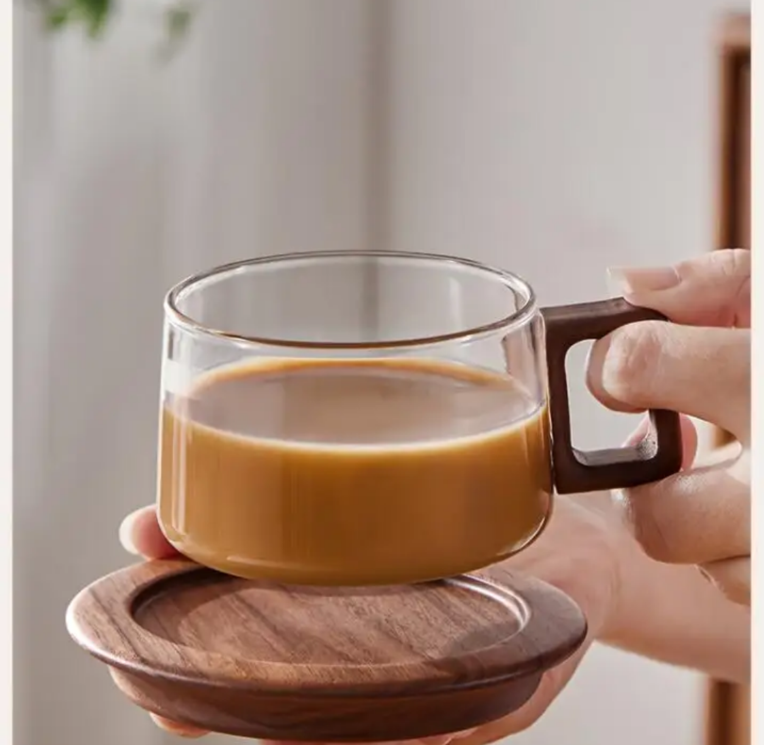Enjoy your coffee or tea moments with this Retro Glass Cup with Wooden Handle and Saucer, a perfect blend of classic charm and modern craftsmanship. Made from heat-resistant borosilicate glass, it’s ideal for both hot and cold beverages. The ergonomic wooden handle adds a touch of sophistication while keeping your hand cool, and the matching wooden saucer completes the aesthetic look — perfect for stylish home setups, cafes, or gifting.
