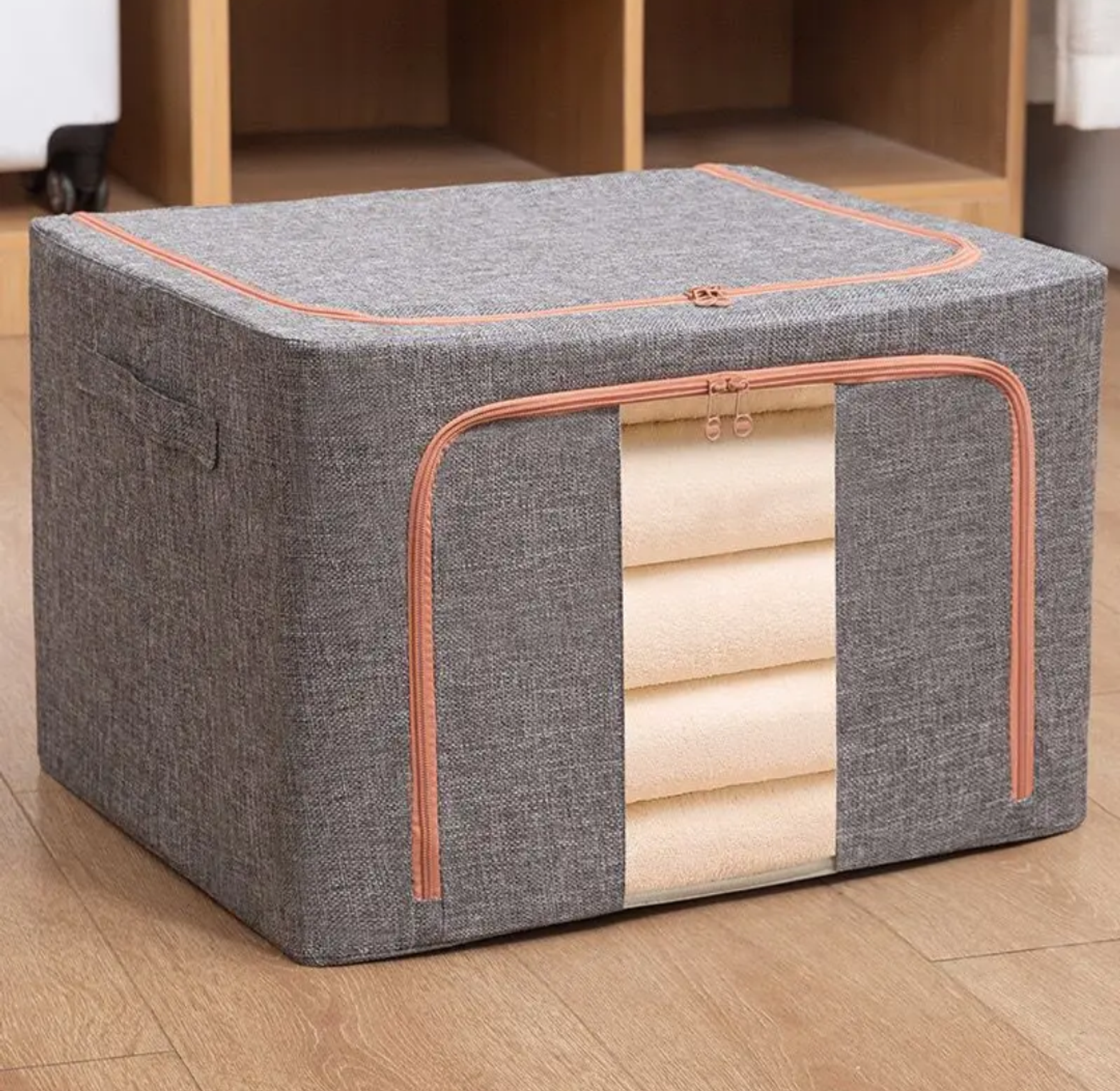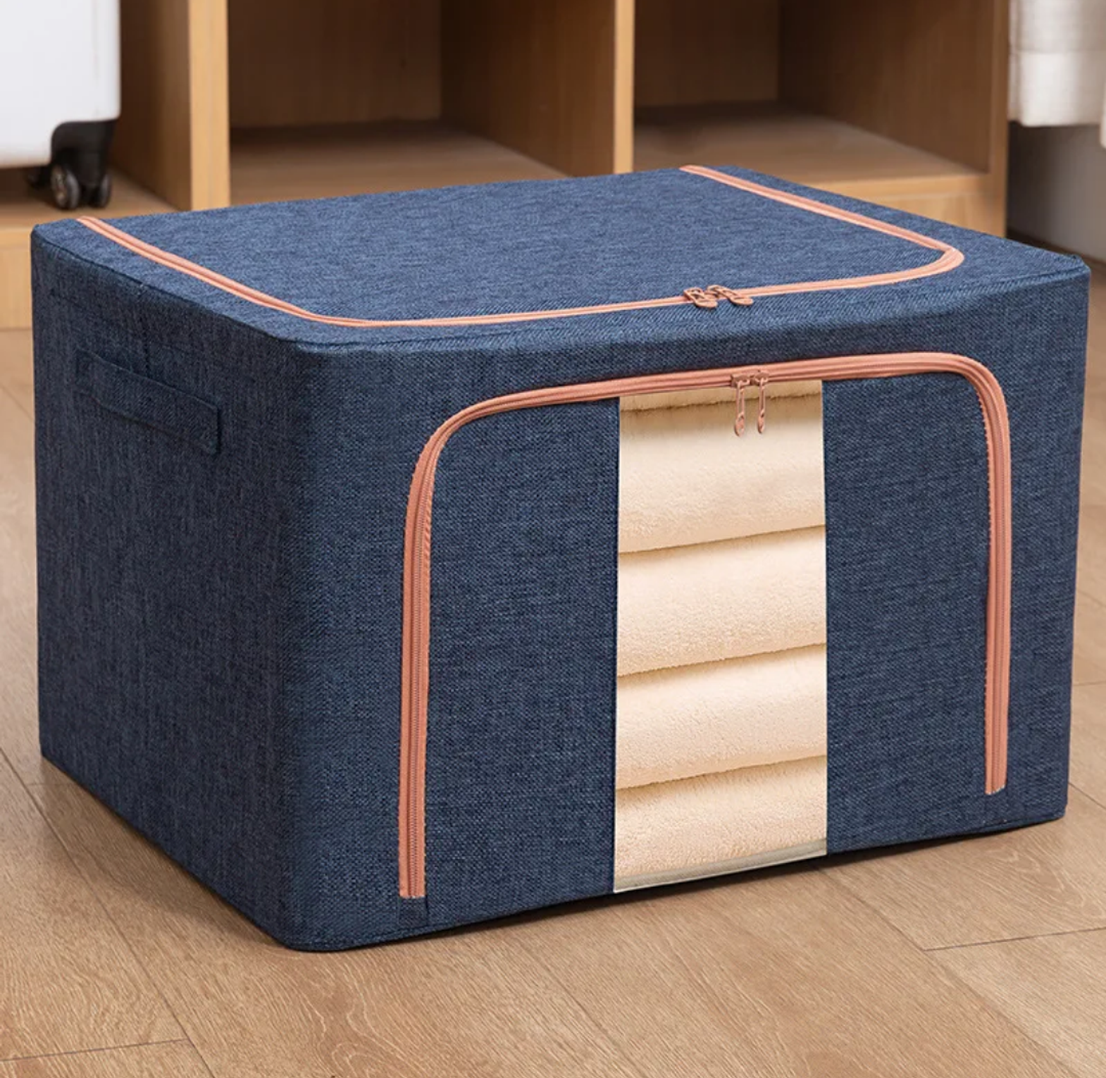 Keep your space tidy with our large 100L Zipped Closet Organizers. Perfect for storing clothes, bedding, and seasonal items, these organizers feature a sturdy design with a front and top zip opening for easy access. Available in navy blue, grey, beige, and green, they combine functionality with style, making storage both practical and aesthetically pleasing.