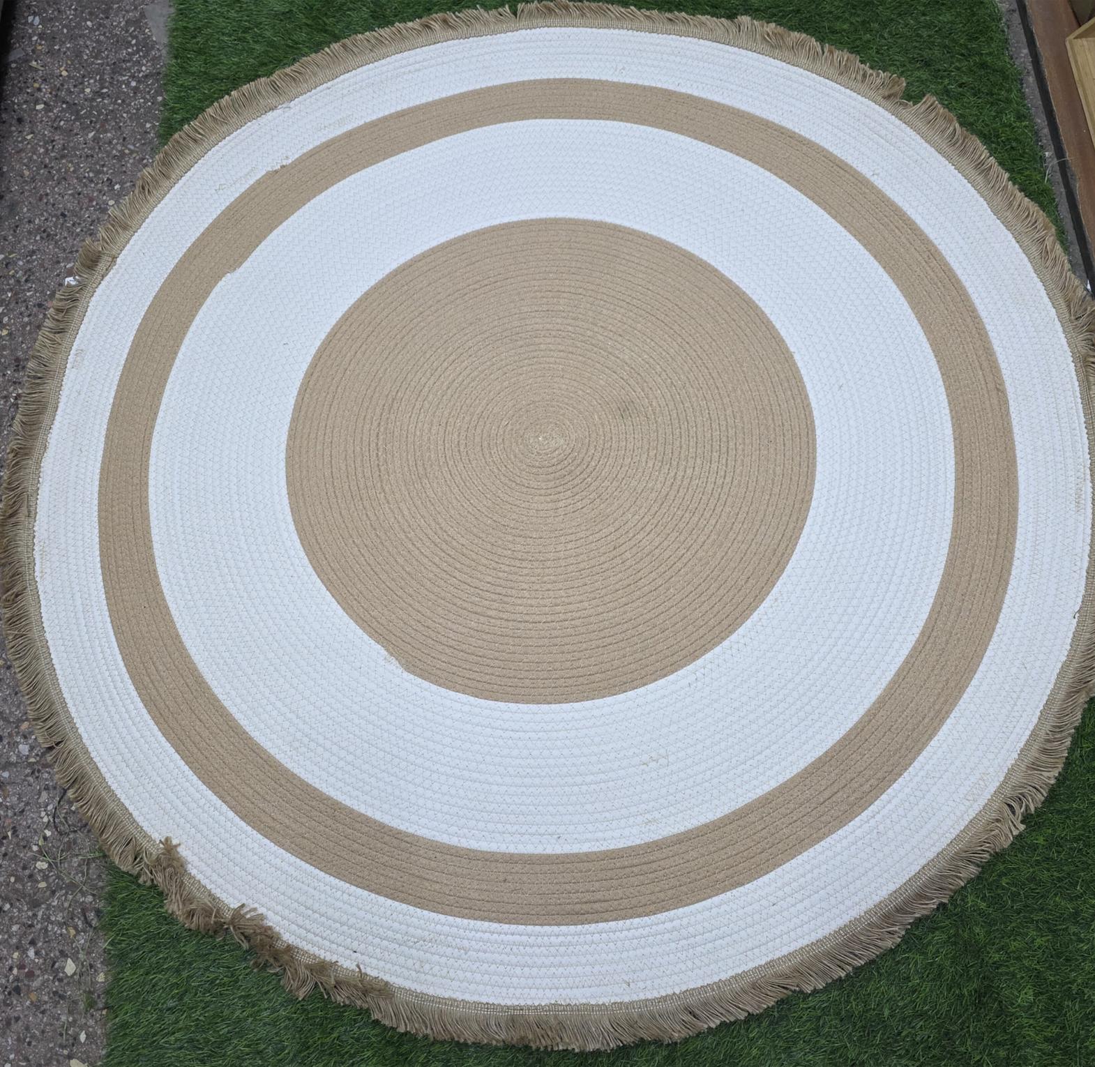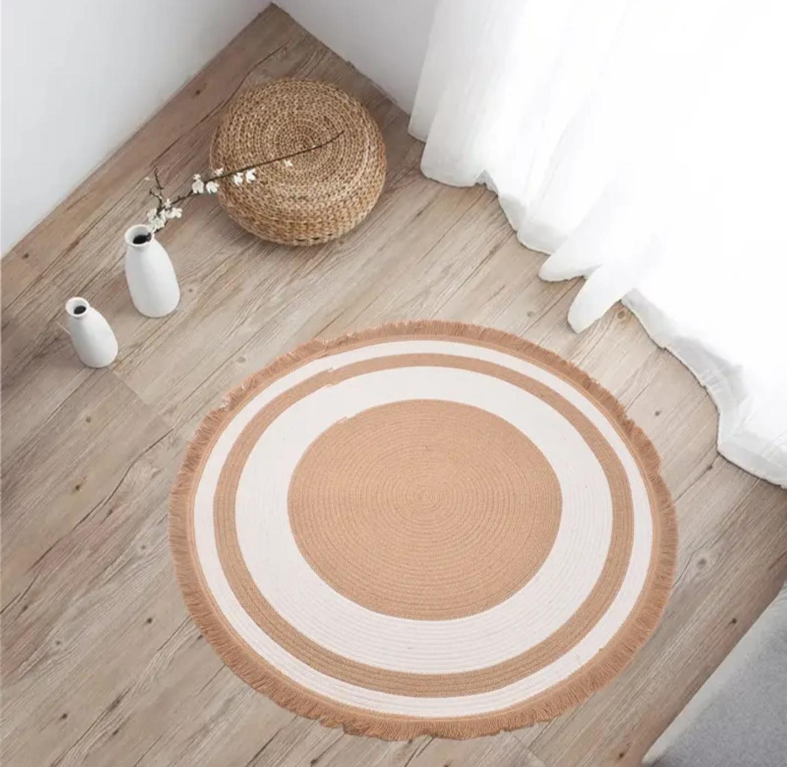 Bring warmth, texture, and style to your home with this 120cm round woven boho floor mat. Crafted with a hand-woven natural fiber design, it blends seamlessly into modern, Nordic, or bohemian-inspired interiors. Its neutral tones and durable weave make it a versatile piece, ideal for use in the bedroom, living room, dining area, or as a stylish entryway mat. This rug not only enhances your space with a cozy aesthetic but also adds a touch of eco-friendly, timeless charm to your home décor.