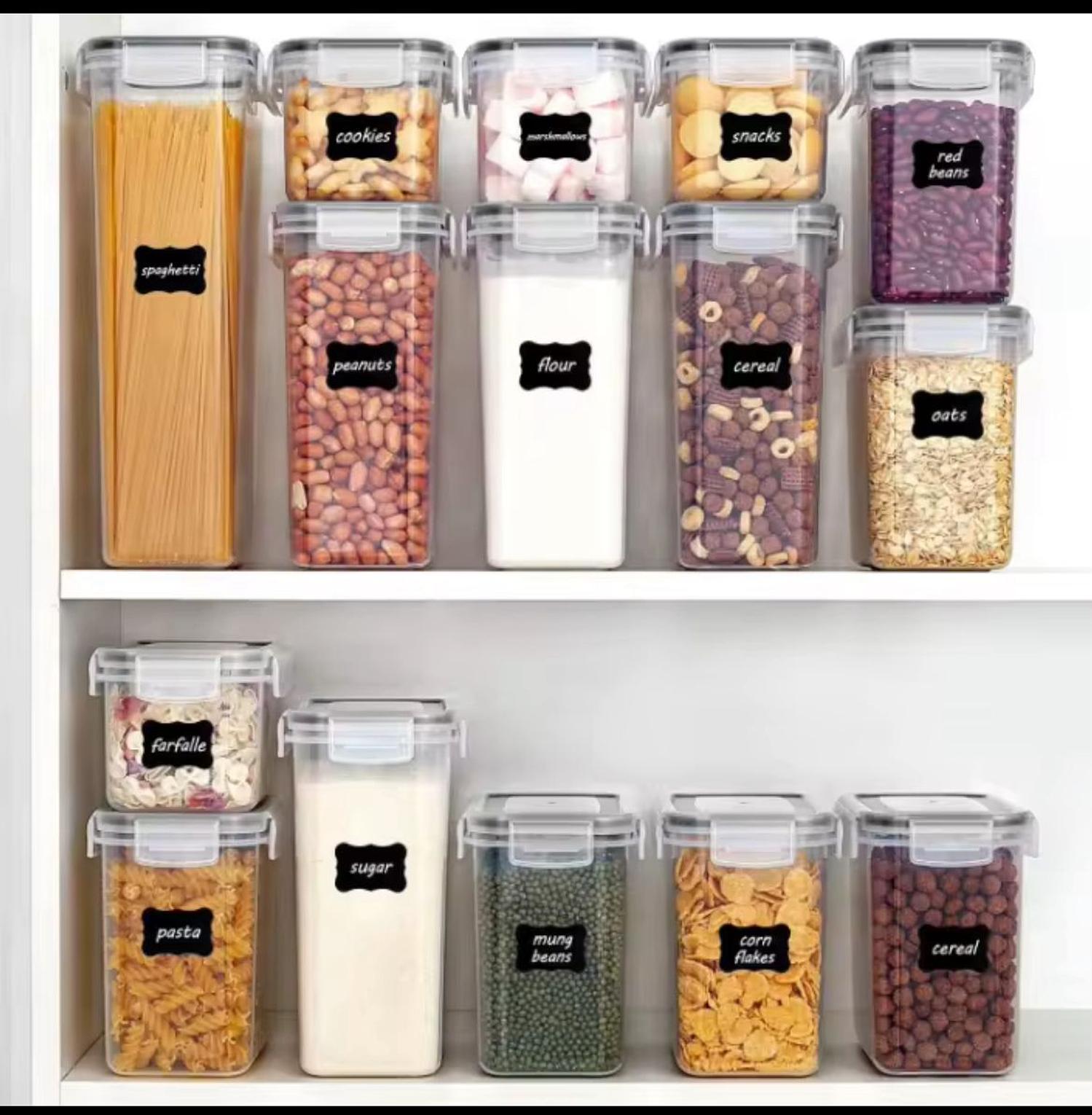 Keep your kitchen neat and your food fresh with this 16-piece food storage container set. Made from food-grade plastic, these containers are designed with airtight lids that lock in freshness and prevent spills. The set includes a variety of sizes – 4pcs 800ml, 4pcs 1400ml, 4pcs 2000ml, and 4pcs 2800ml – making it perfect for storing cereals, grains, pasta, flour, snacks, and more. For added convenience, it comes with stickers, a pen, and measuring cups to help you organize, label, and portion your ingredients with ease. A must-have for a clean and organized pantry.