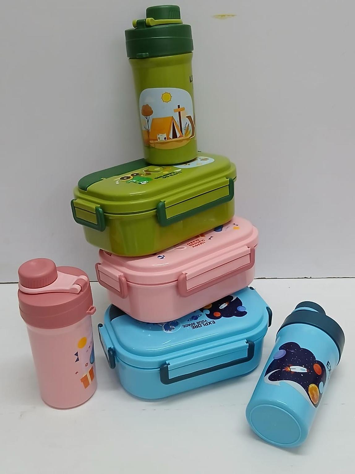 A practical and fun 2-in-1 set combining a partitioned snack box and matching water bottle for kids on the go. Perfect for school, outings, and travel.