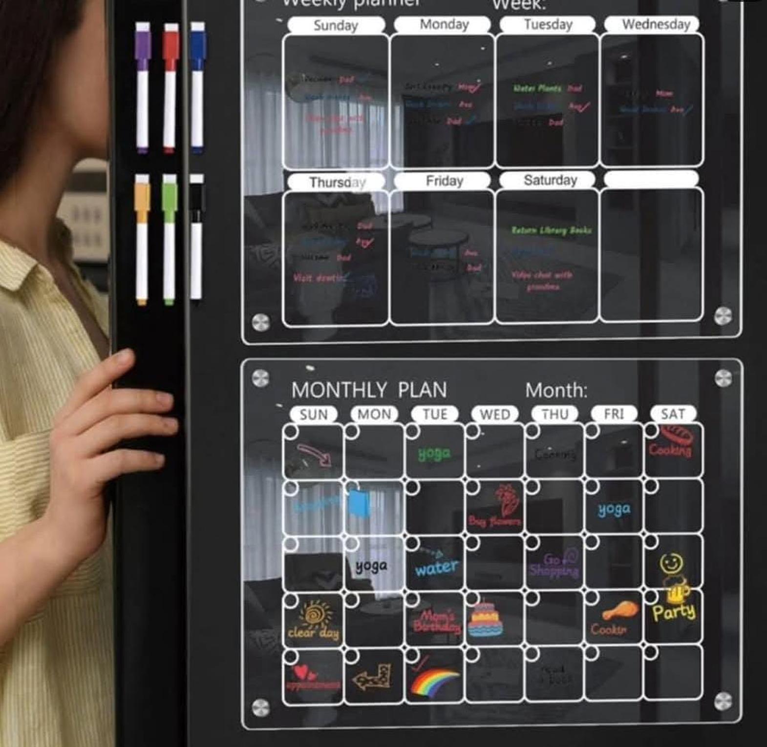 Stay ahead of your schedule with this practical 2-piece magnetic planner set, featuring one weekly and one monthly dry-erase board for maximum flexibility and clarity. Designed to stick firmly on refrigerators or any magnetic surface, each board provides ample space to map out your appointments, tasks, meal plans, or goals. The smooth, wipe-clean surface allows for easy updates and reuse, making it a reliable tool for households, students, or busy professionals. Whether you're managing family routines, schoolwork, or personal productivity, this set helps turn cluttered thoughts into a clear plan—right where you can see it, every day.