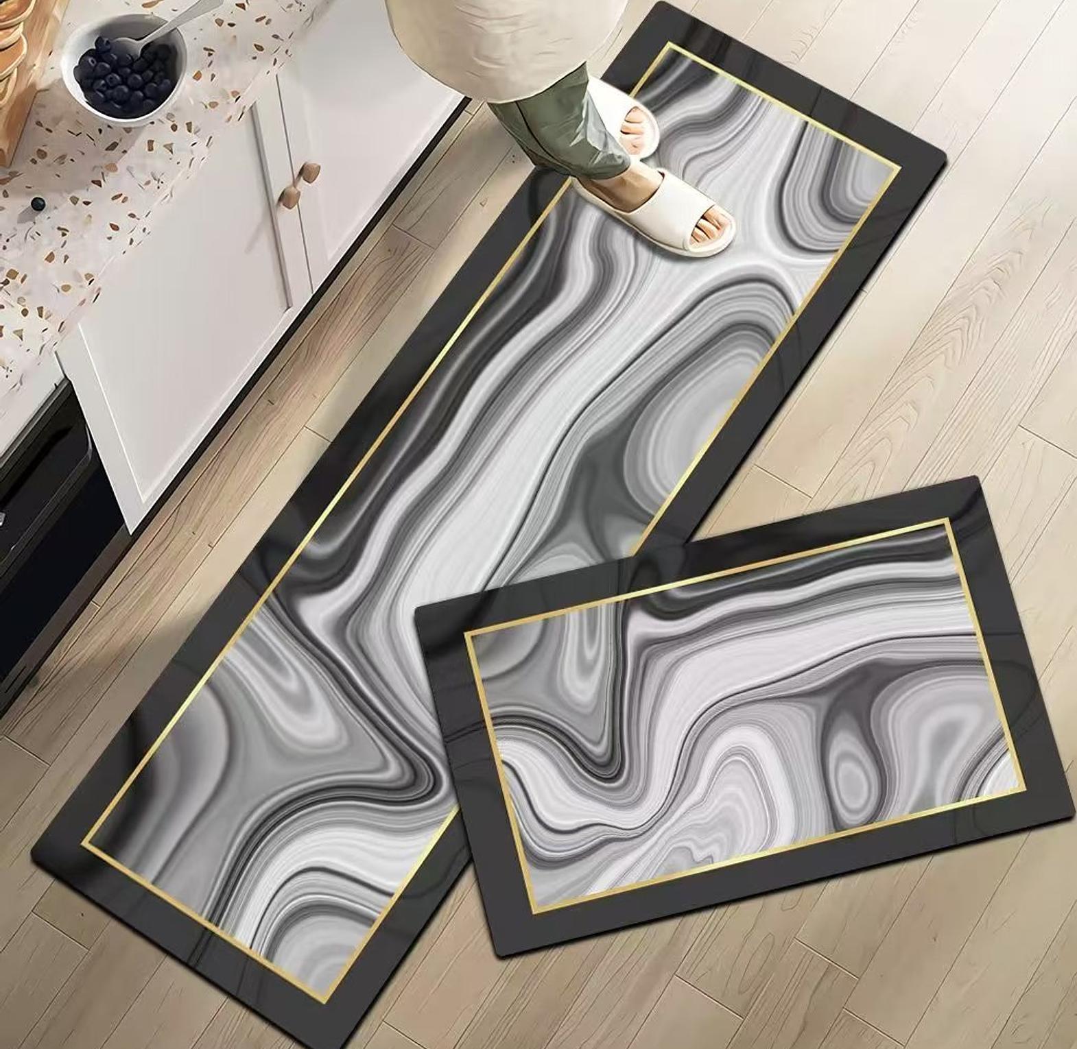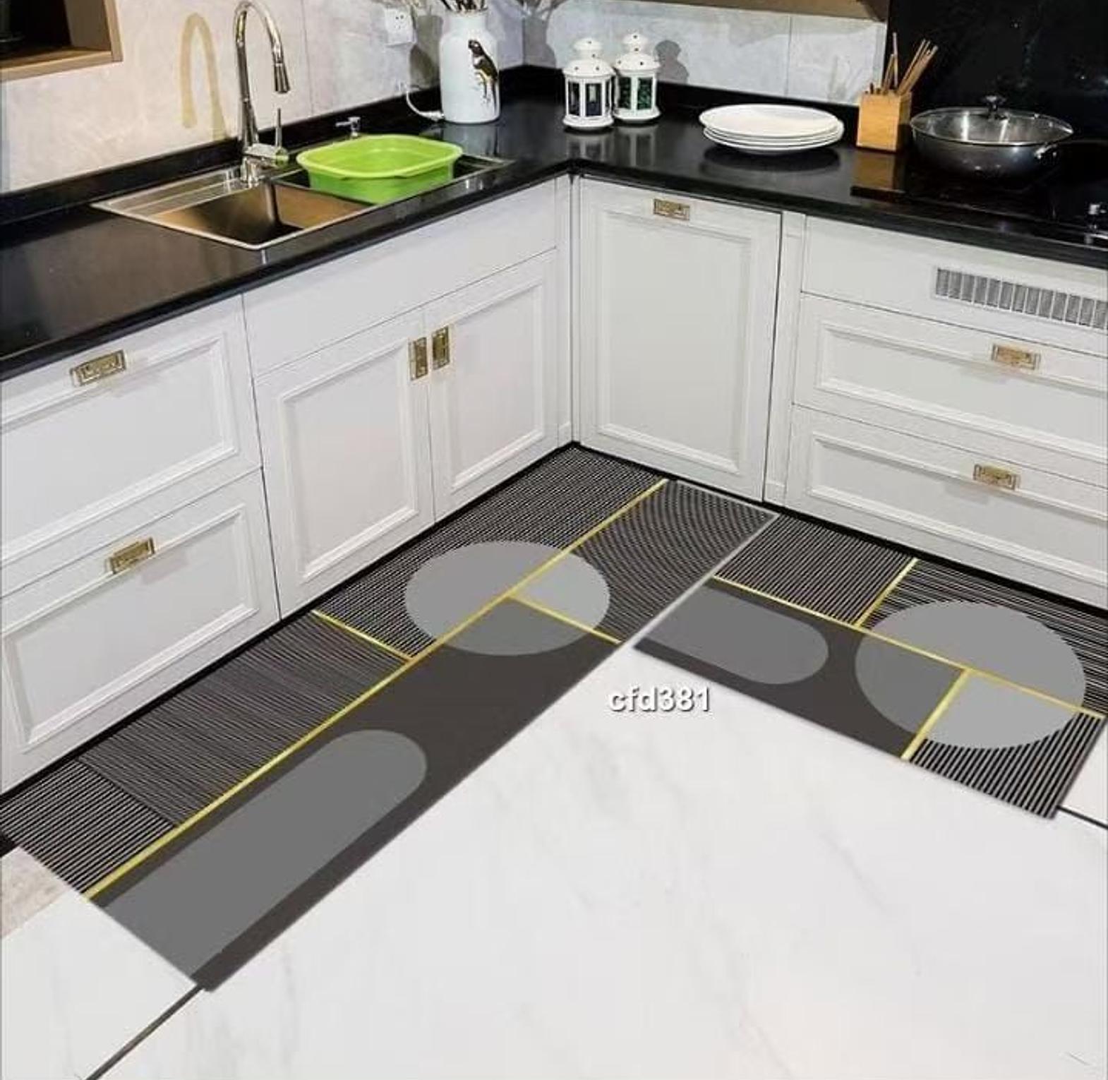 Our 2-piece rubber kitchen mat and runner set is built for comfort, durability, and safety—making it an essential addition to any busy kitchen. Made from high-quality, non-slip rubber, these mats provide a cushioned surface that helps reduce fatigue during long periods of standing while protecting your floors from spills, stains, and wear. The water-resistant, easy-to-clean surface ensures quick maintenance, while the textured bottom keeps the mats securely in place even in high-traffic or wet areas. Perfect for placement in front of the sink, stove, or along workstations, this set includes a standard mat and a longer runner to provide extended coverage and coordinated style. Designed with both function and aesthetics in mind, it brings comfort, cleanliness, and a modern touch to your kitchen space.
