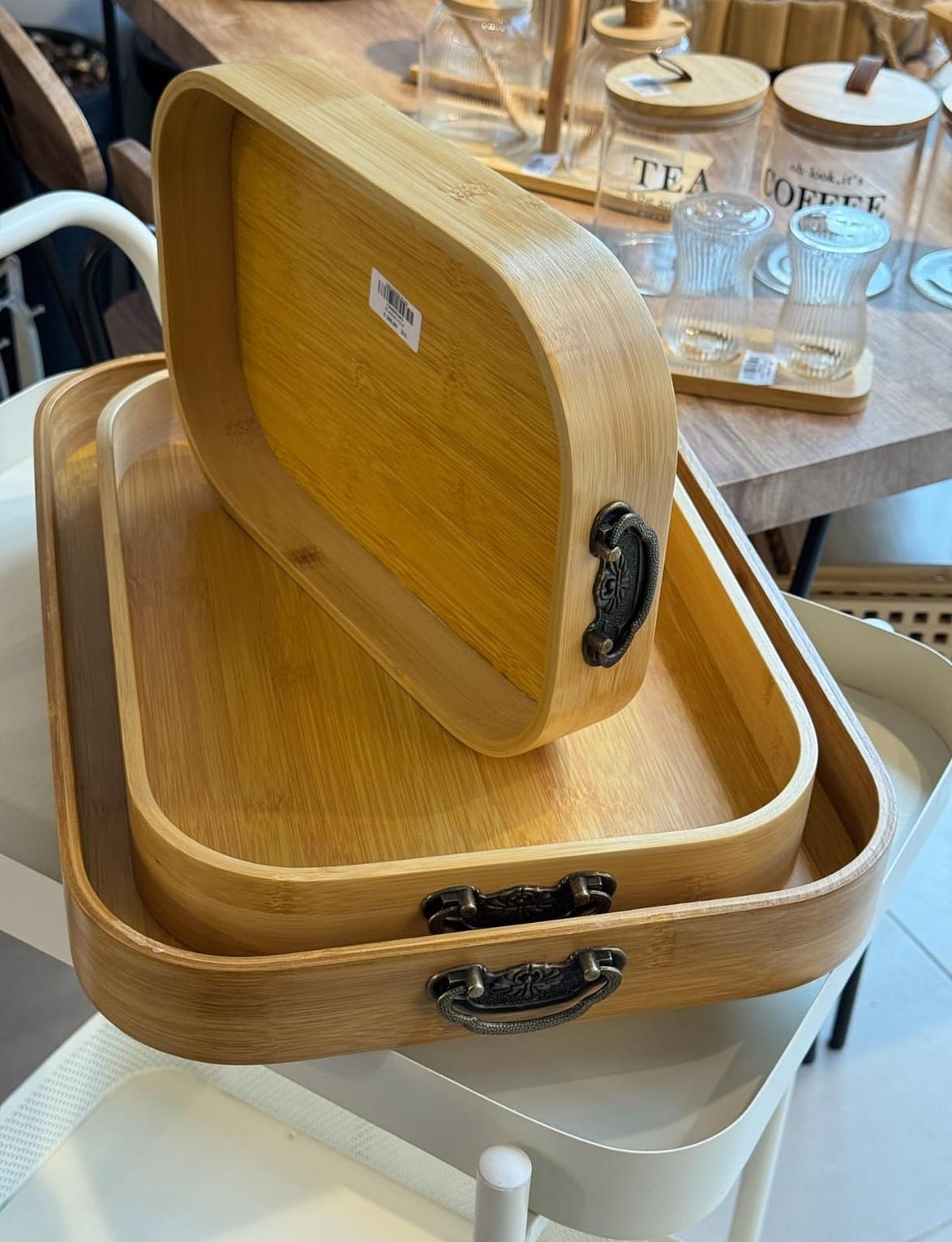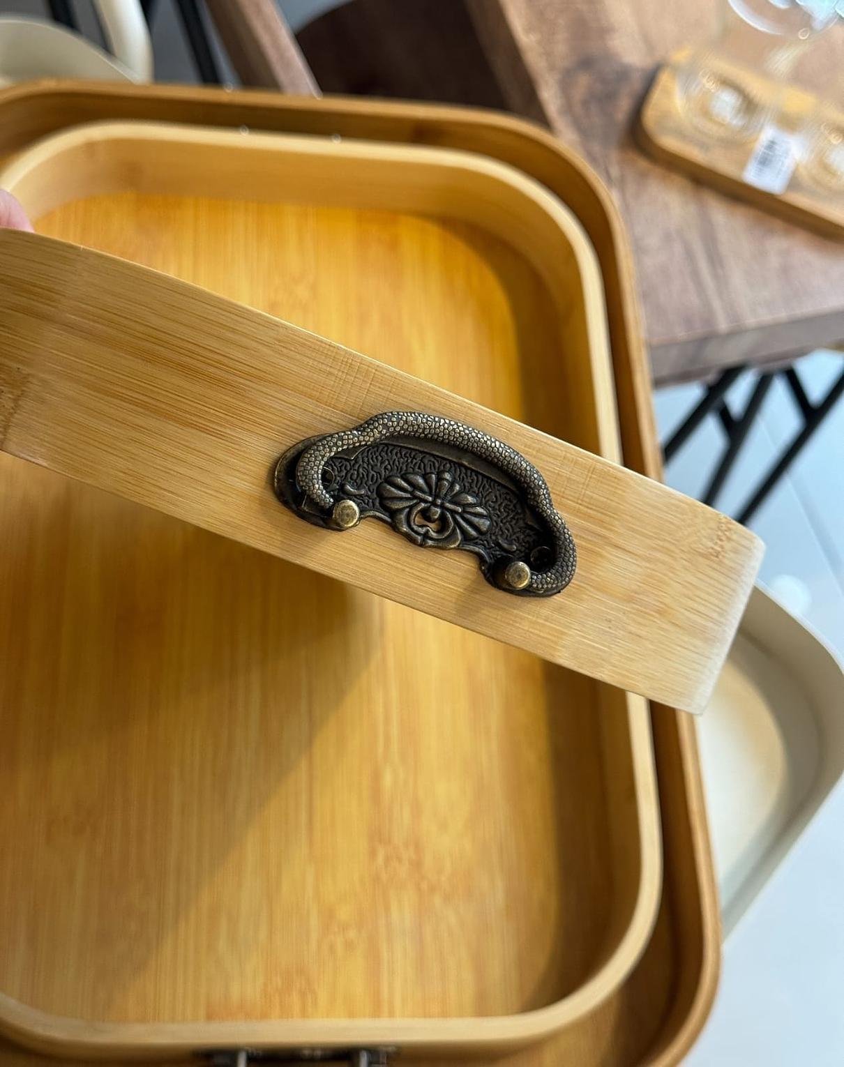 Add a touch of timeless elegance to your home with this 3-Piece Bamboo Serving Tray Set with Antique Metal Handles. Crafted from high-quality natural bamboo, these trays are durable, eco-friendly, and beautifully designed with vintage metallic handles for a classy touch. Ideal for serving drinks, breakfast in bed, snacks, or as decorative centerpieces, the trays nest perfectly for compact storage. A versatile and stylish addition to your kitchen, dining area, or coffee table décor, perfect for both everyday use and entertaining guests.