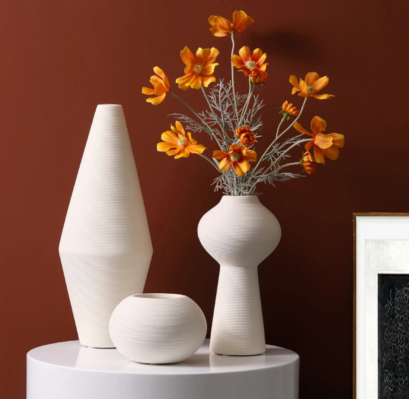 Add a touch of timeless elegance to your interior with this 3-Piece Simple Elegant Ceramic Vase Set. Designed with a minimalist aesthetic, each vase features a clean, smooth finish that effortlessly complements a variety of décor styles—from Scandinavian to modern contemporary.