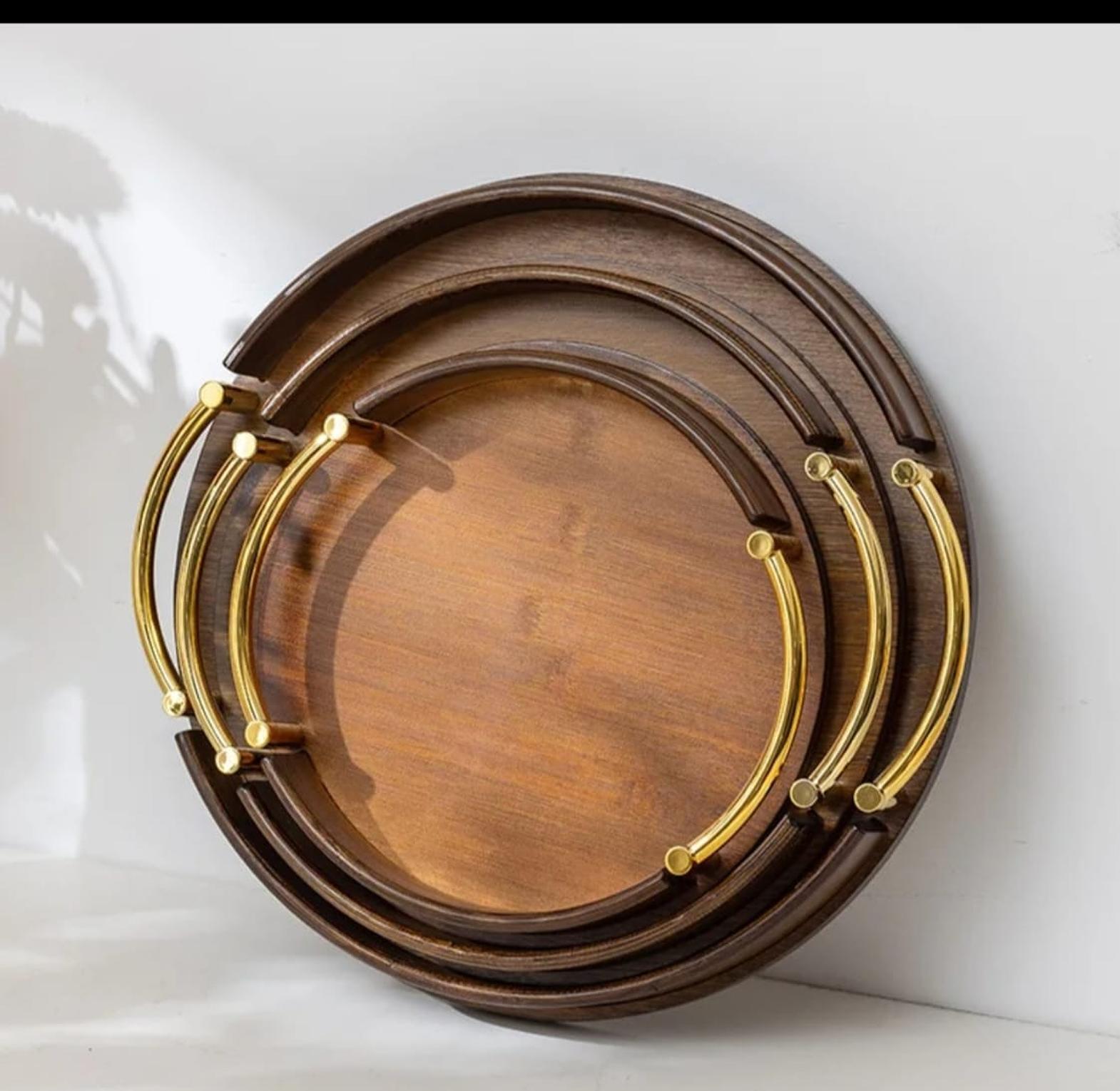Add a touch of luxury to your space with this 3-Piece Round Bamboo Tray Set, featuring sleek golden metal handles. Whether you're serving drinks, displaying candles, or styling your coffee table, these trays bring functionality and flair together beautifully.