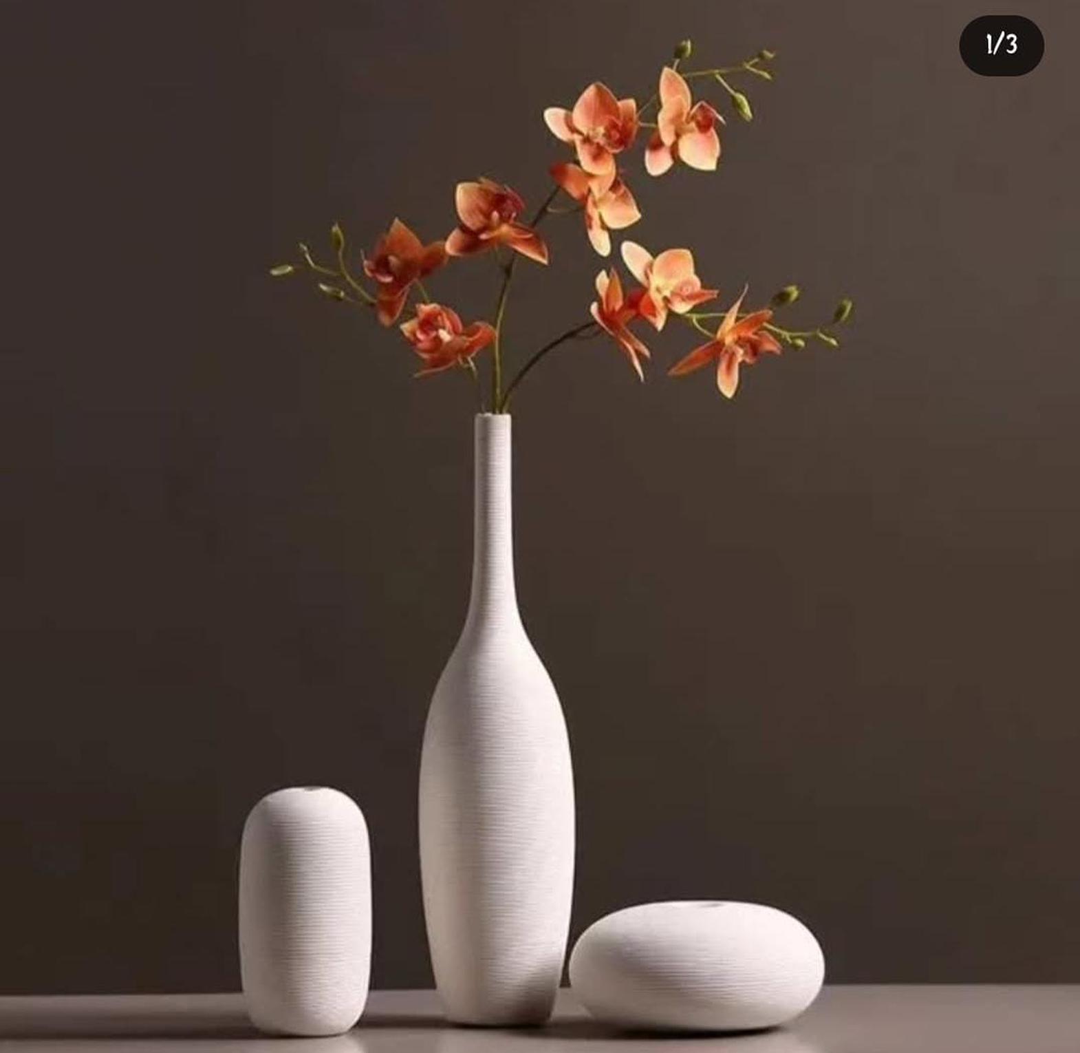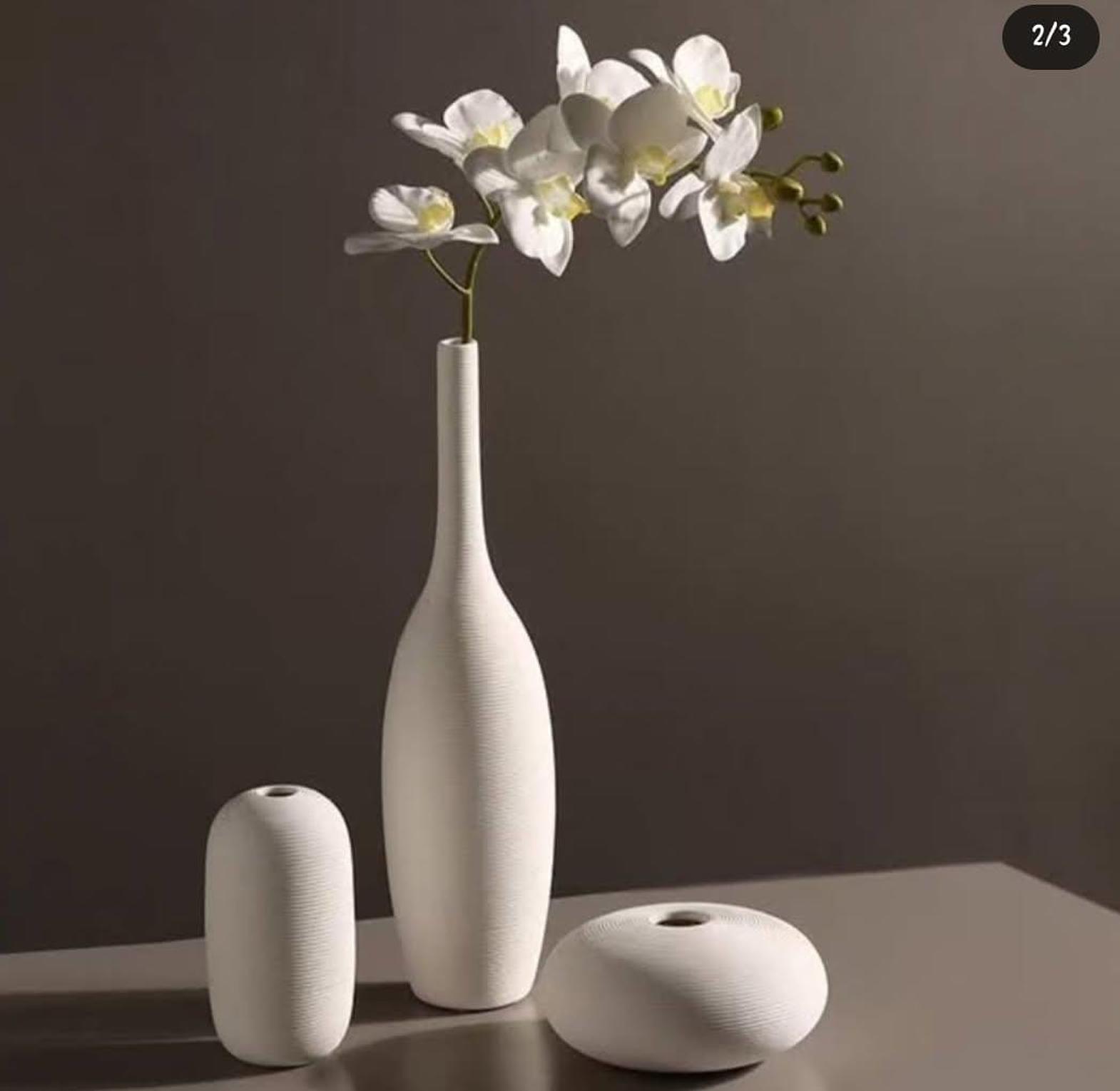 Enhance your home’s interior with this stunning 3-piece ceramic vase set, designed to bring both beauty and sophistication to any space. Crafted from high-quality ceramic, each vase features a unique shape and finish, allowing them to stand out as elegant décor pieces whether filled with fresh flowers or left empty for a minimalist touch. The set’s neutral tones and sleek design make them versatile enough to complement a wide range of home styles, from modern to rustic. Perfect for living rooms, dining areas, or hallways, these vases are an ideal way to add a pop of charm and personality to your home, making them a beautiful addition to any table or shelf.