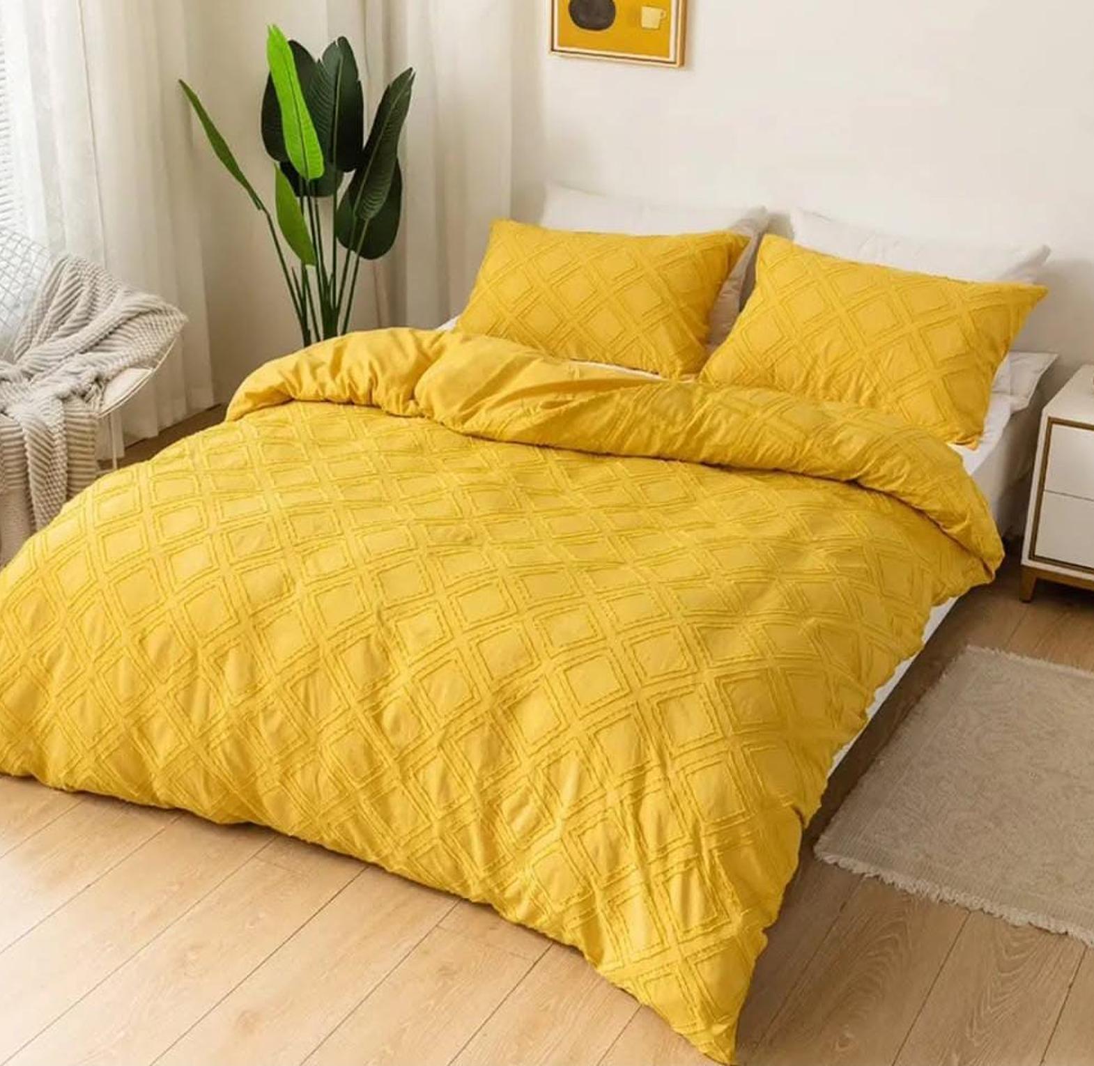 Our 3-piece tufted duvet cover set is designed to elevate your bedroom décor with a subtle yet sophisticated touch. Made from soft, breathable fabric, each piece in the set—including one duvet cover and two matching pillow shams—is adorned with delicate tufted patterns that add depth and charm without overwhelming your space. The high-quality material ensures a smooth feel against the skin while maintaining durability through frequent use and washing. The cover includes secure closures and interior ties to keep your insert in place, combining function with elegance. Ideal for those who appreciate classic textures and clean lines, this set blends comfort and design, making it a versatile choice for both modern and traditional interiors.