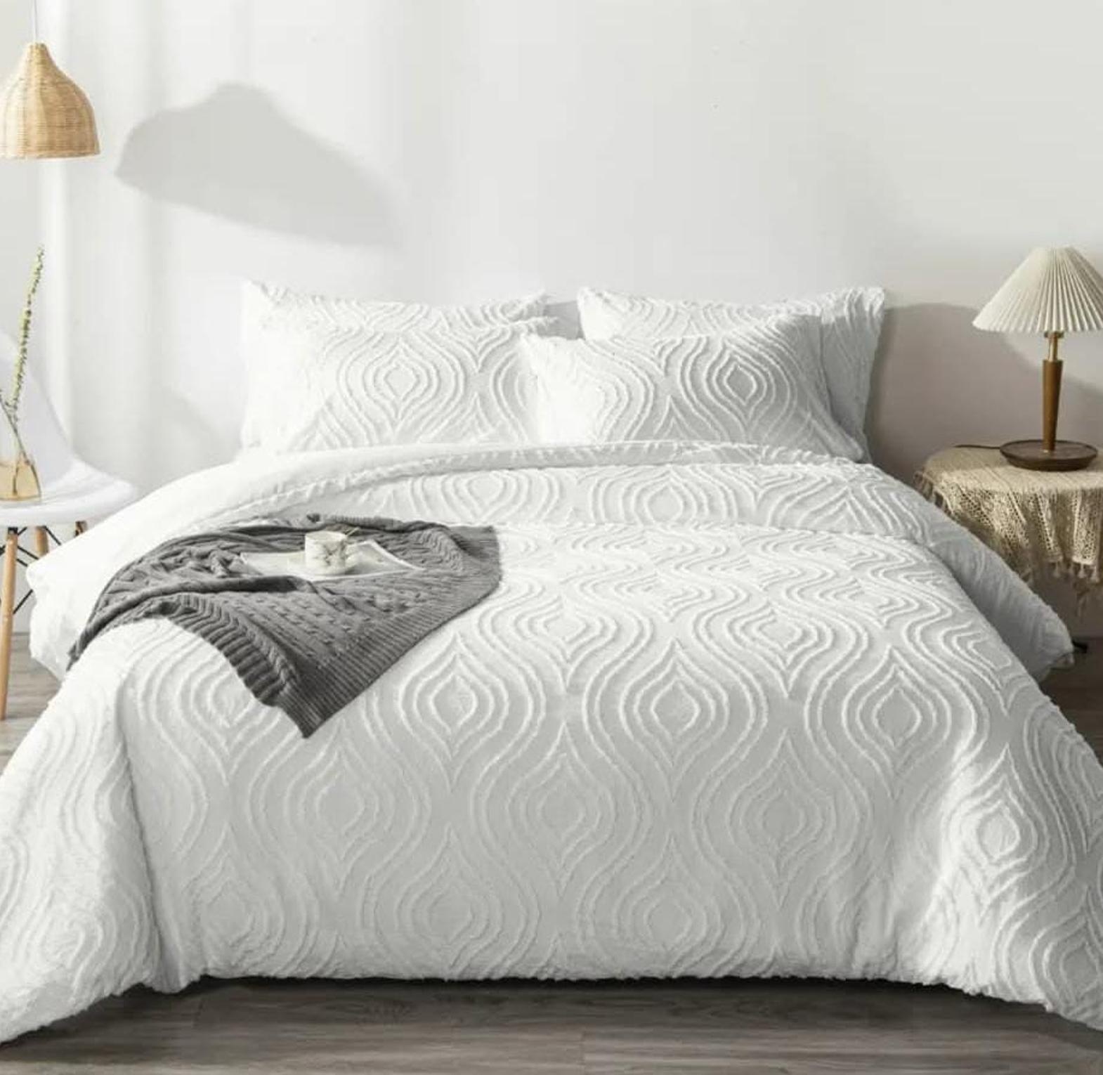 A 3-piece tufted duvet cover set featuring elegant textured detailing, offering timeless style and cozy comfort for a refined bedroom look.