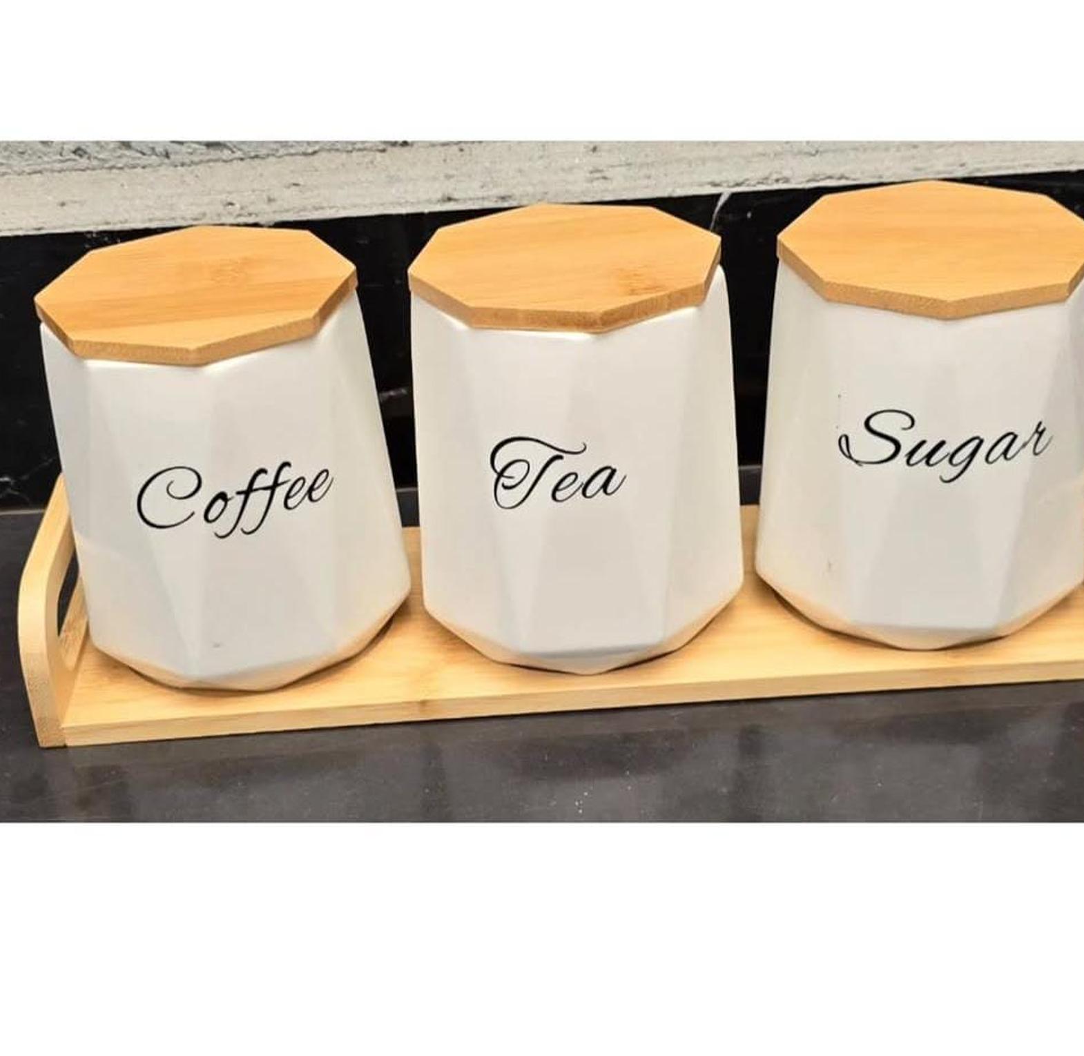 Keep your kitchen essentials neatly stored with this sophisticated 3-piece ceramic canister set, complete with a beautifully crafted wooden base. Designed for both functionality and style, these canisters are perfect for storing coffee, sugar, tea, or dry ingredients while adding a touch of modern elegance to your countertop. The high-quality ceramic construction ensures durability and freshness, while the airtight lids help preserve the flavors and textures of your stored items. The smooth, minimalist design paired with the warmth of the wooden base creates a harmonious balance, making this set a perfect addition to contemporary, farmhouse, or rustic kitchens. Ideal for those who appreciate stylish organization with a refined touch.