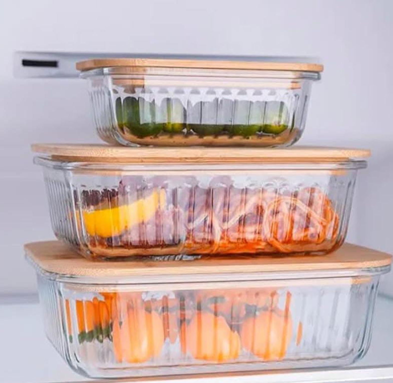 Our 3-piece set of ribbed heavy glass dishes with bamboo lids blends durability, functionality, and natural beauty for both storage and presentation. The thick, high-quality ribbed glass provides a timeless, textured aesthetic while offering excellent resistance to everyday wear and temperature changes. Each dish comes with a snug-fitting bamboo lid that seals in freshness—making the set perfect for storing leftovers, meal prep, serving snacks, or organizing pantry staples. The natural bamboo lids add a warm, eco-conscious touch and double as lightweight serving boards or mini trays. Ideal for a modern kitchen or a well-styled table, this set combines classic materials with versatile design—bringing both charm and practicality to your home.