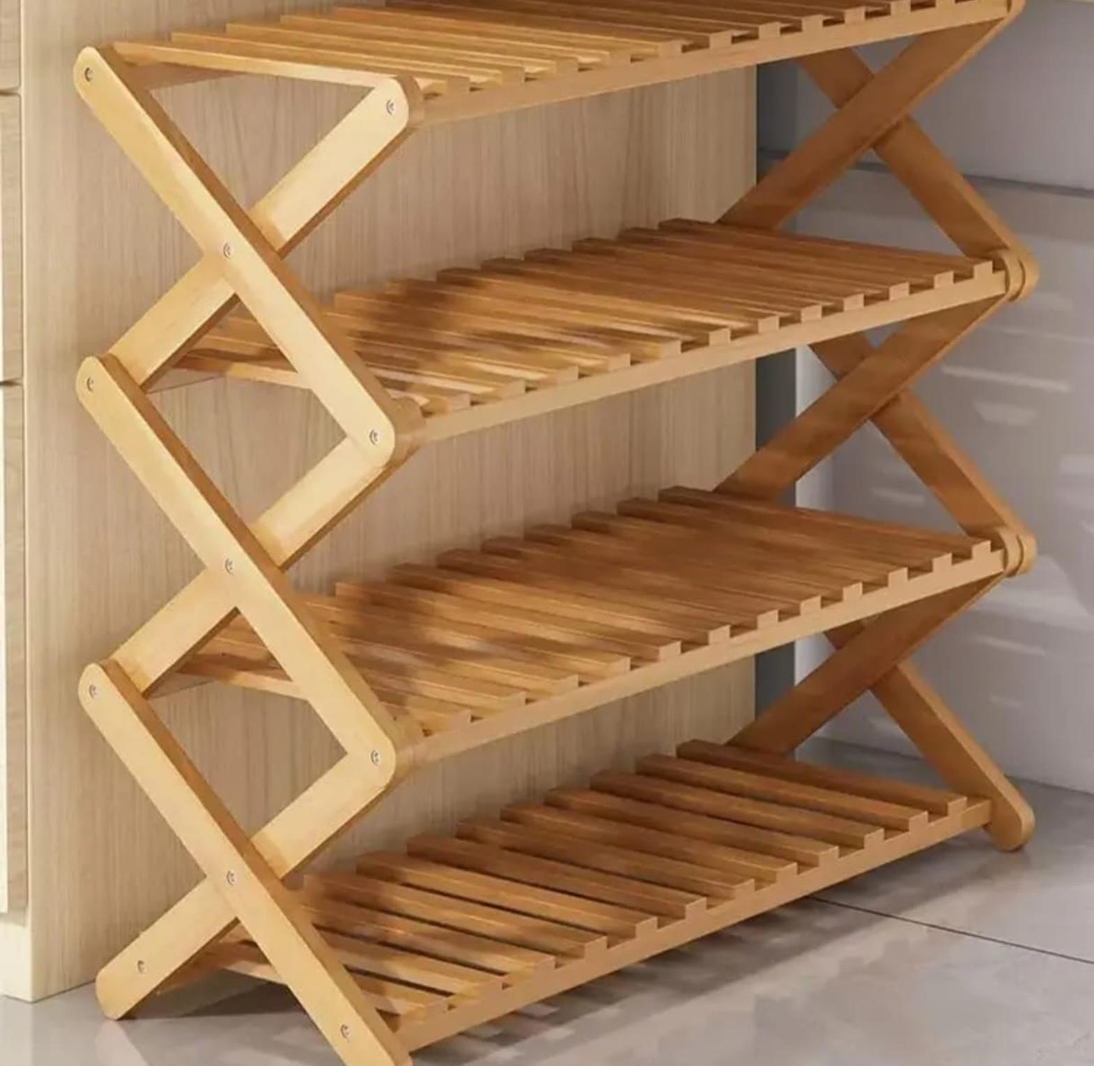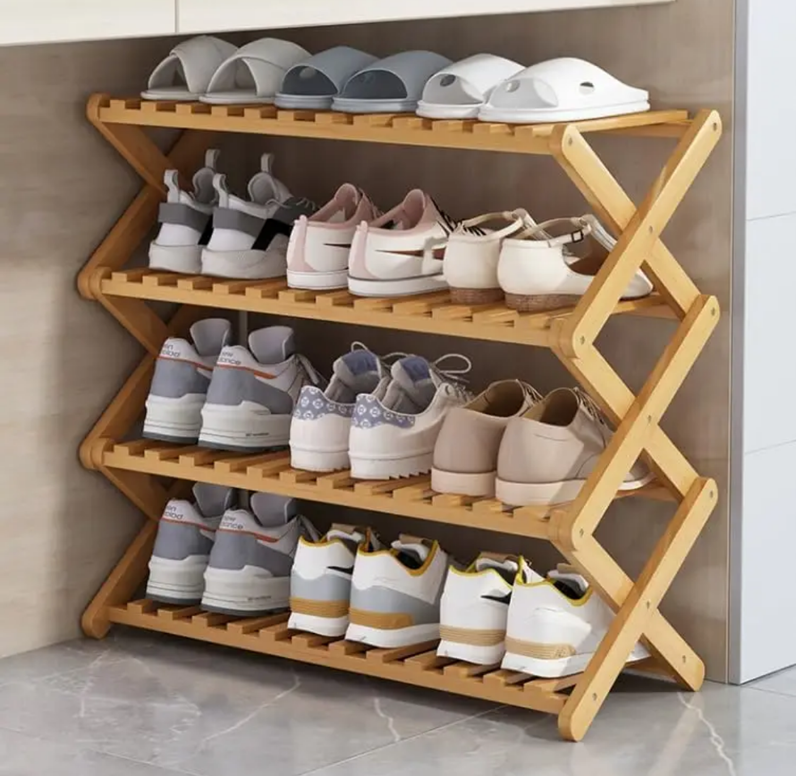 Organize your footwear in style with our 4-Layer Foldable Bamboo Shoe Rack. Crafted from eco-friendly bamboo, this rack is not only sturdy but also adds a warm, natural touch to your space. Its X-frame foldable design makes it easy to move or tuck away when not in use – perfect for minimalist or space-conscious homes.