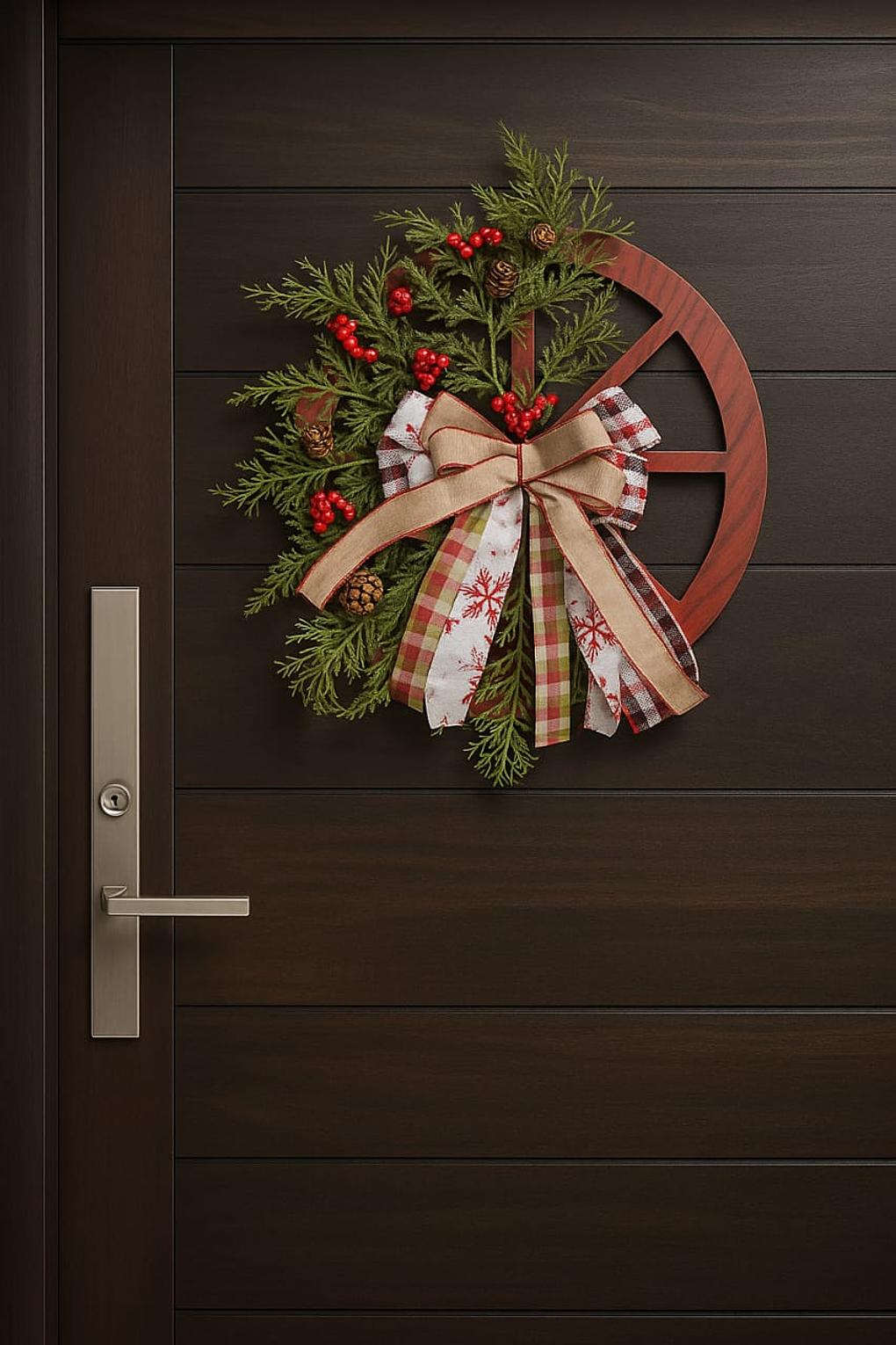 Celebrate the season with our 40cm Rustic Christmas Wagon Wheel Wreath, a stunning blend of traditional holiday colors and natural textures. Designed with twinkling greenery, red berries, pinecones, and rustic wood tones, this festive wreath adds cozy farmhouse charm to your door, wall, or fireplace décor. Its unique wagon wheel design makes it a standout piece that evokes warmth, nostalgia, and timeless Christmas traditions. Perfect for both indoor and outdoor decoration, this wreath instantly transforms any space into a holiday retreat full of joy and rustic elegance.