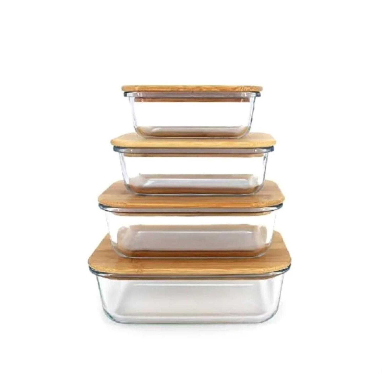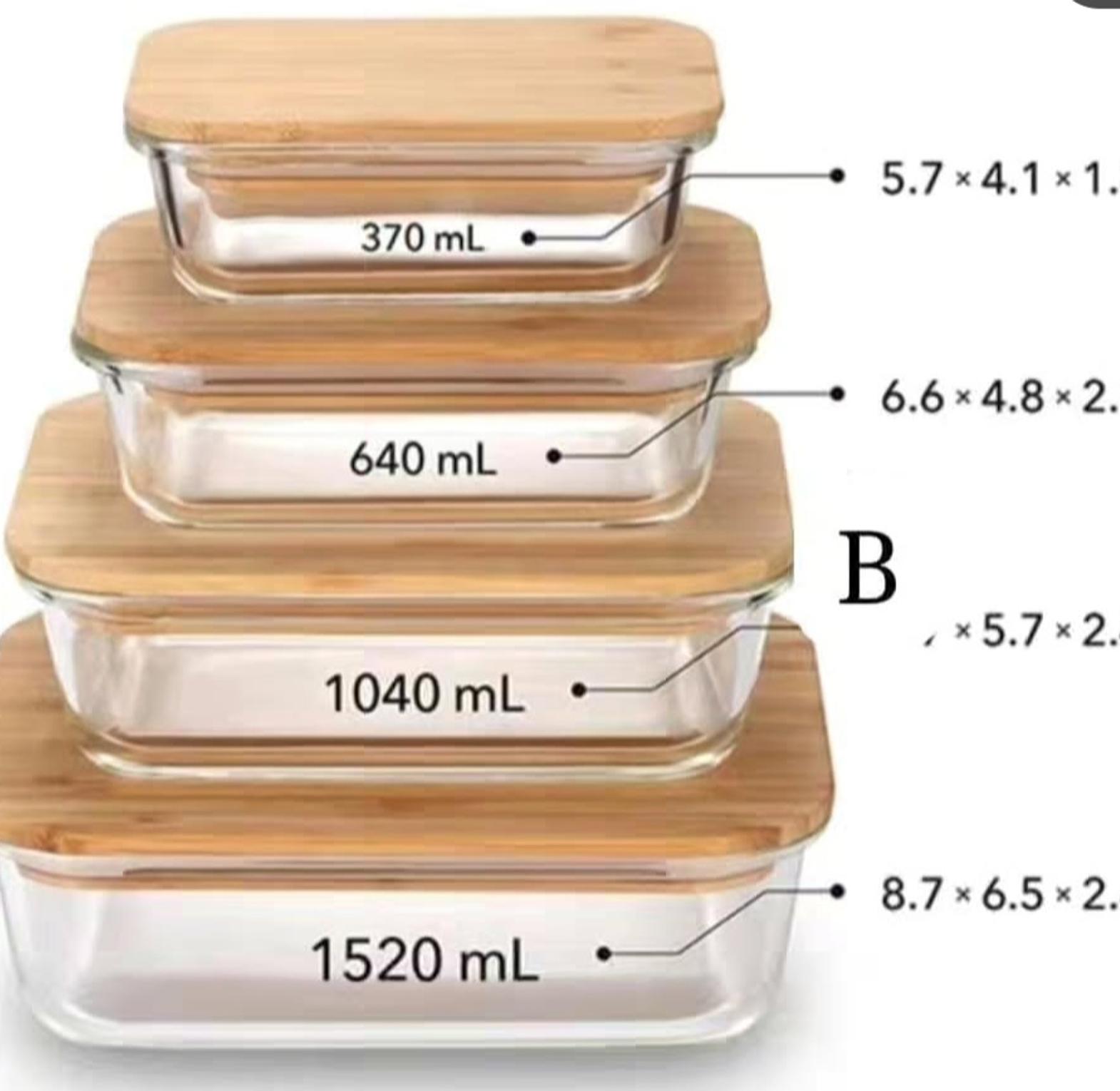 Upgrade your food storage with this elegant 4-piece glass lunch and snack box set, featuring airtight wooden lids for secure and stylish sealing. The set includes containers in four practical sizes—370ml, 640ml, 1040ml, and 1520ml—perfect for everything from snacks and salads to full meals.