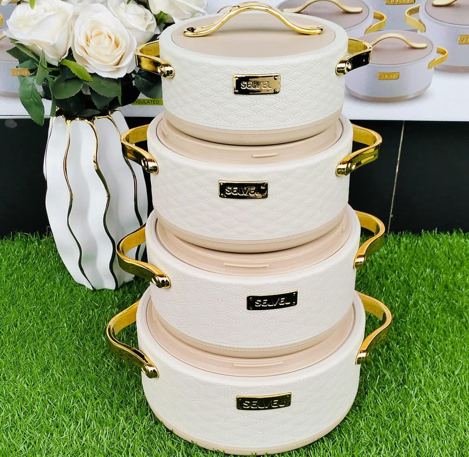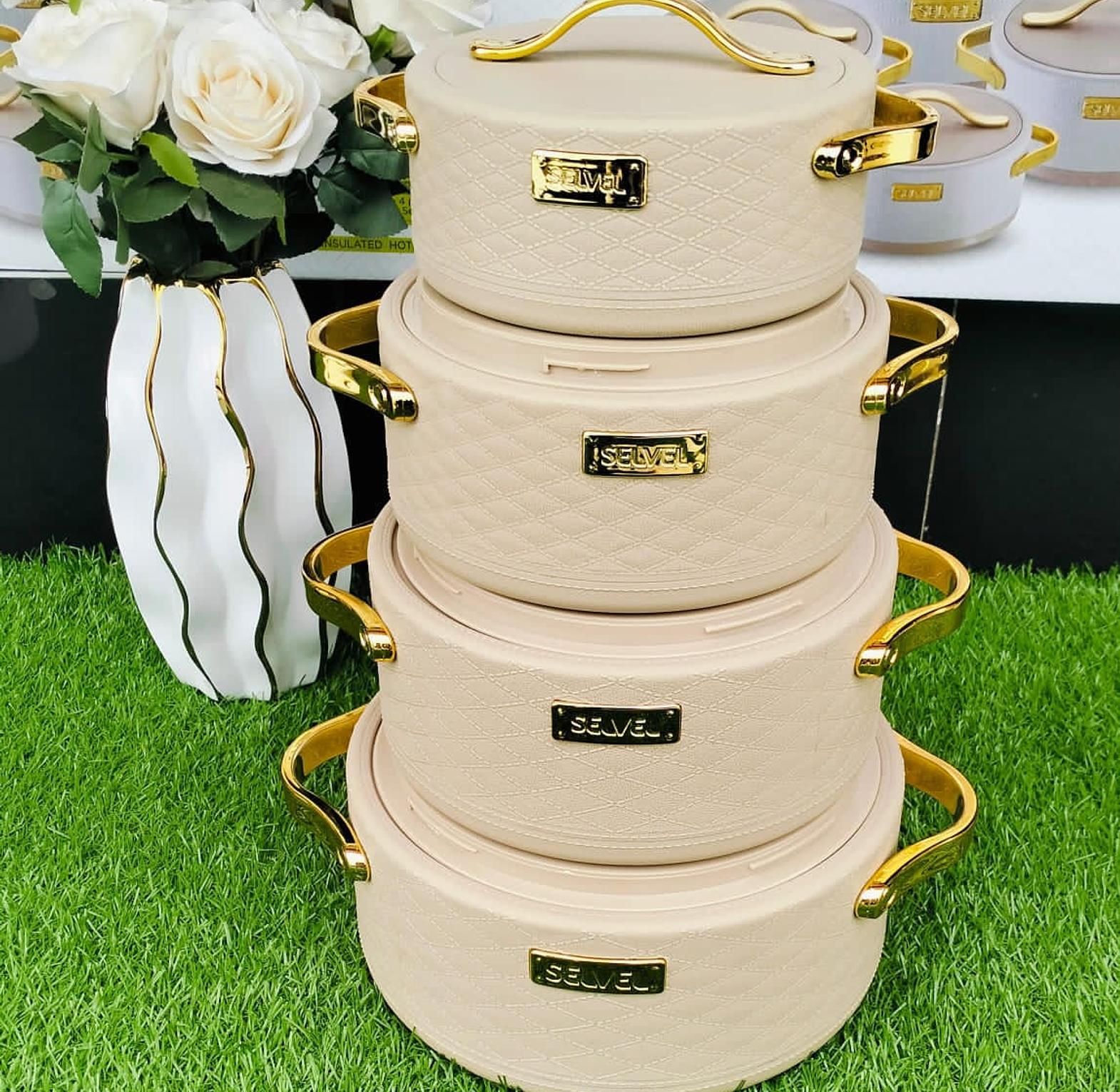 This 4-piece insulated hotpot set is built for both everyday meals and special gatherings, offering a practical range of capacities—1L, 1.5L, 2.5L, and 3L—to suit everything from soups and rice to stews and large servings. Each hotpot features a high-grade stainless steel inner lining encased in a durable, heat-retentive outer shell, ensuring long-lasting temperature retention without affecting the flavor or texture of your food. The secure twist-lock lids seal in heat and prevent spills, while the ergonomic side handles provide safe and easy handling. Whether you're hosting guests, preparing meals in advance, or serving buffet-style dinners, these hotpots keep your dishes piping hot and table-ready without the need for reheating—combining convenience, quality, and timeless design in one essential kitchen set.