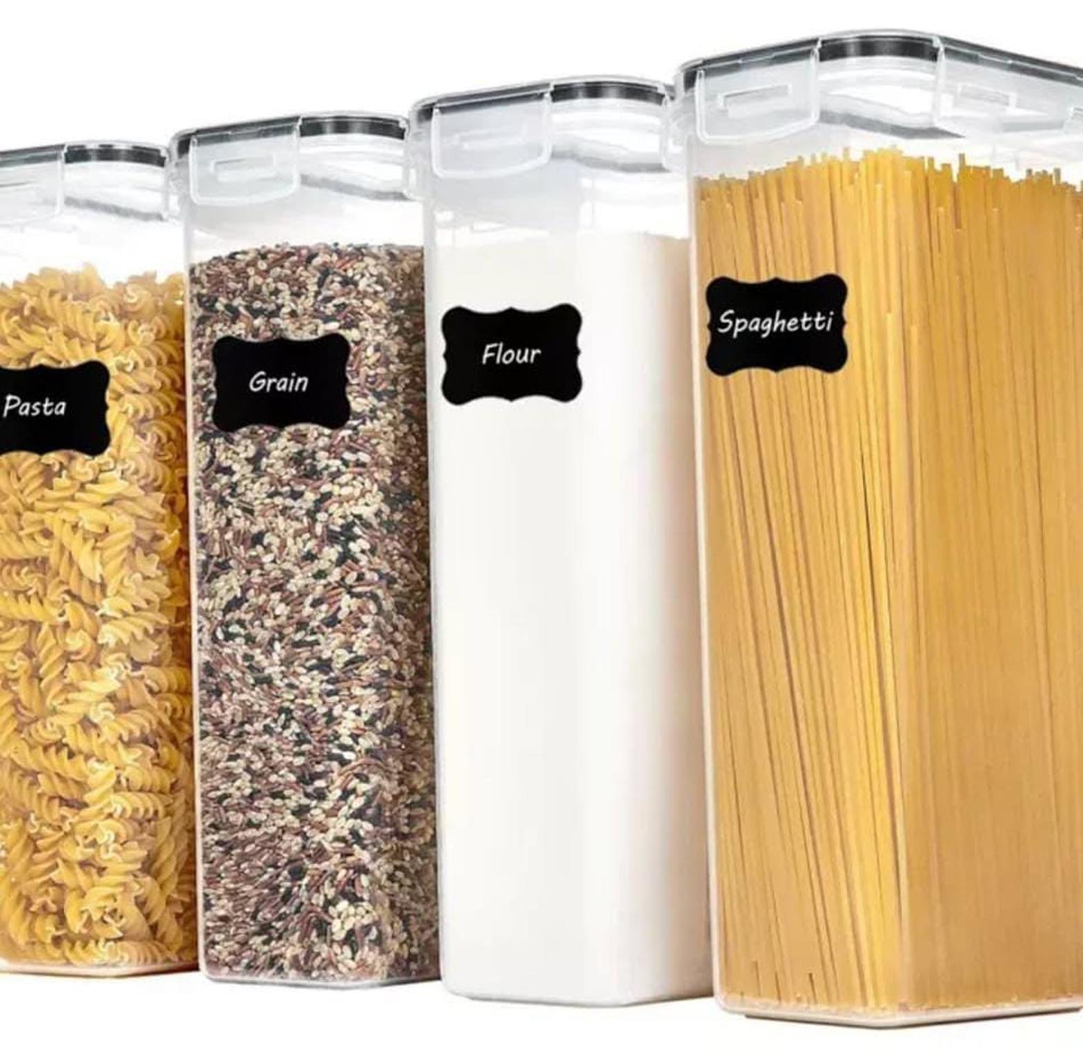 Our 4-piece airtight food storage container set is the perfect kitchen essential for keeping dry goods fresh, neatly organized, and easy to access. Each container is made from durable, BPA-free plastic with clear walls for quick visibility, and features a secure locking lid that forms an airtight seal—ideal for storing pasta, grains, cereals, snacks, or baking ingredients. The stackable design maximizes storage efficiency in your pantry, cabinets, or fridge, while the easy-open lids ensure smooth daily use without compromising freshness. Designed with both function and tidiness in mind, this set helps reduce food waste, maintain order, and bring a clean, coordinated look to your storage system. Whether you’re meal prepping or simply decluttering, these containers are a reliable upgrade for any home kitchen.