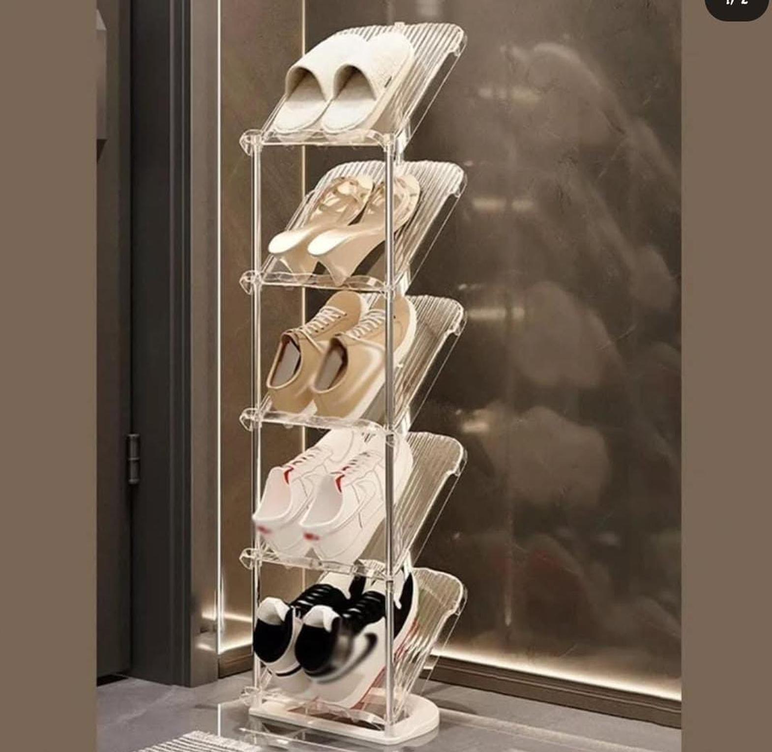 This 5-layer acrylic shoe rack is a refined solution for keeping your entryway neat, organized, and visually appealing. Crafted from sturdy, transparent acrylic, it creates a light, open look while securely holding multiple pairs of shoes without adding visual clutter. Its vertical, tiered design maximizes storage in compact spaces, making it ideal for apartments, small homes, or minimalist interiors. The smooth surfaces are easy to clean and resistant to moisture—perfect for daily use in high-traffic areas. More than just functional, this rack is a modern interpretation of traditional household order, blending clarity, convenience, and understated sophistication.