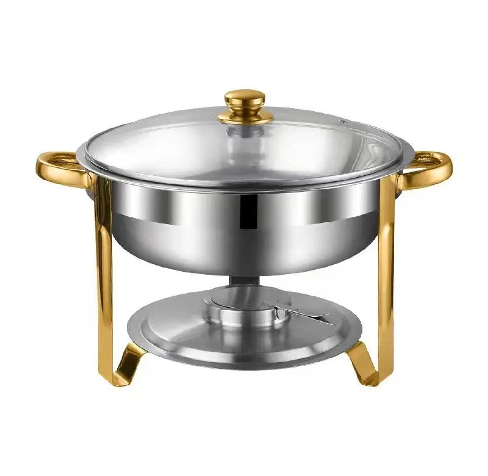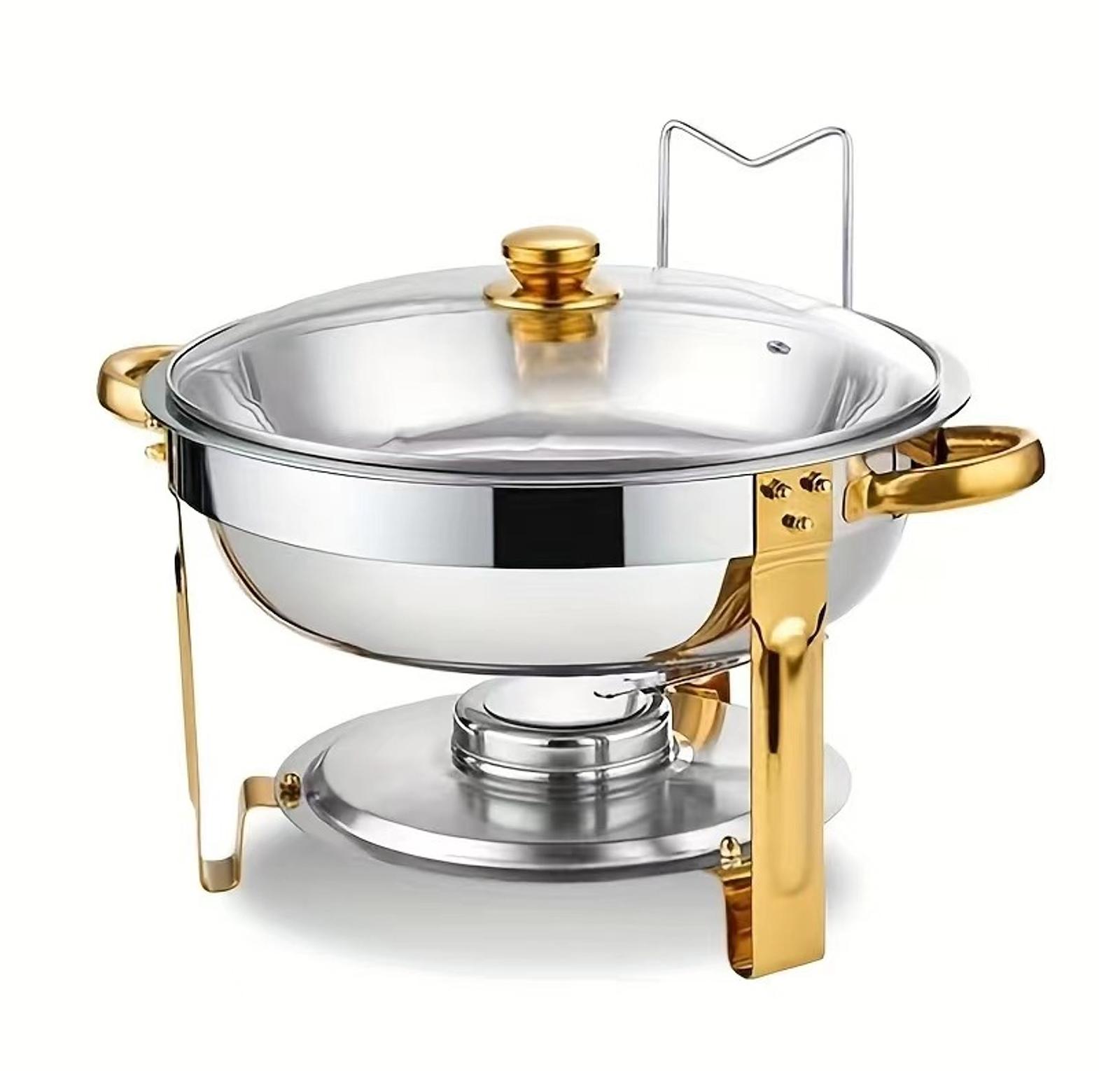 5L Elegant Stainless Steel Chafing Dish/ Food Warmer with Golden Accents