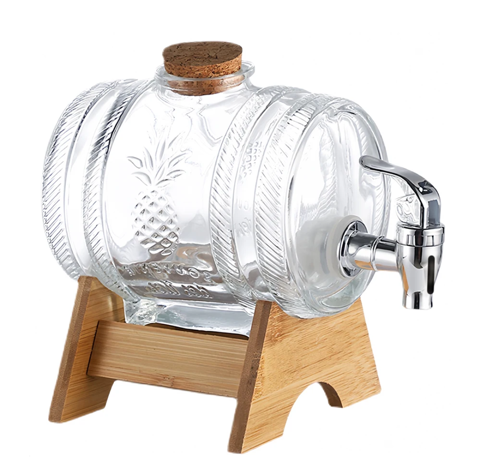 Serve your drinks in style with this elegant 5-litre horizontal glass juice dispenser, perfect for home hosting and events. ▫️Capacity: 5 Litres ▫️High-quality clear glass with stylish textured design ▫️Horizontal barrel shape for a modern look ▫️Durable wooden base holder for stability ▫️Stainless steel tap for smooth, easy dispensing ▫️Ideal for juice, infused water, cocktails & party drinks Perfect for parties, brunch setups, events, and everyday entertaining.