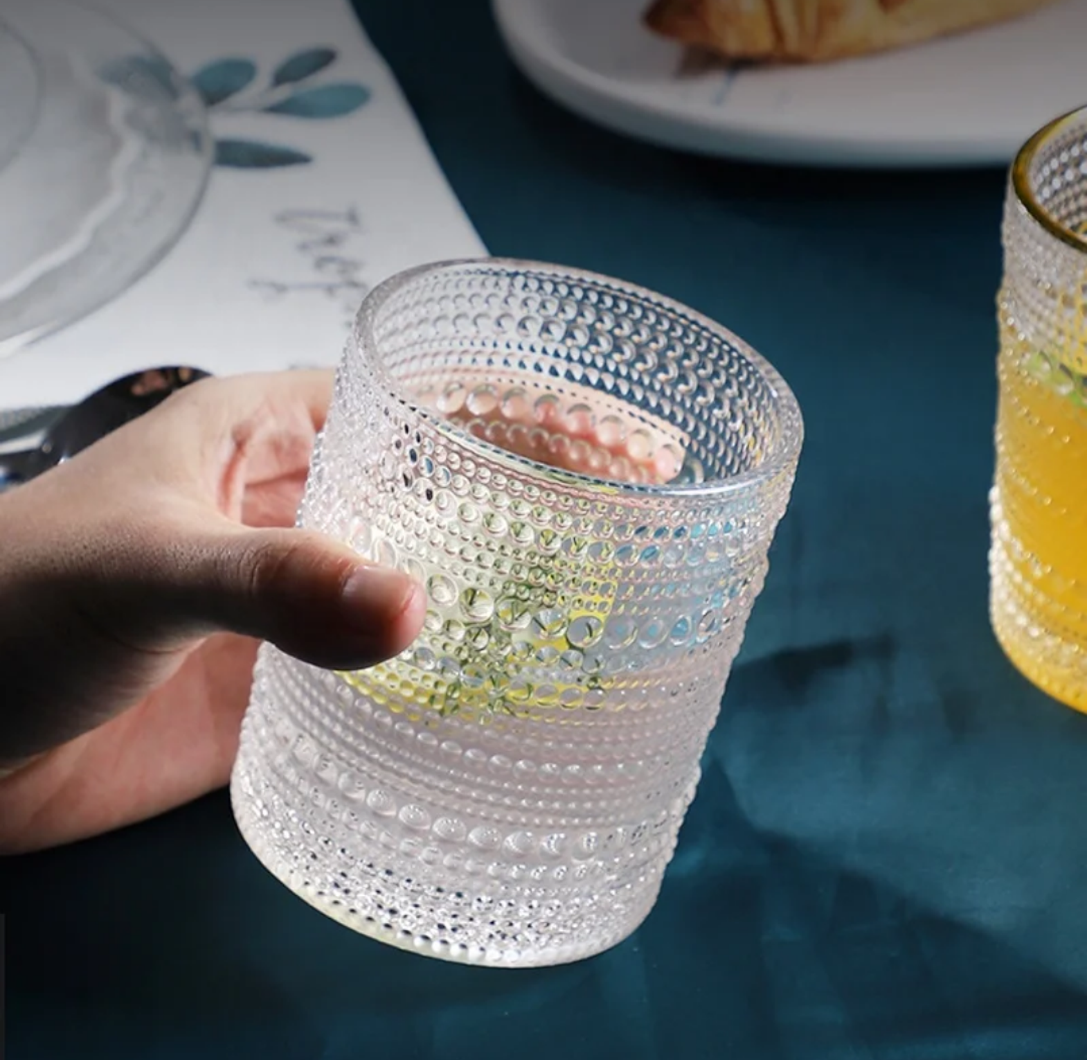 Crafted from durable, thick glass, these pieces offer a premium hand-feel and an eye-catching aesthetic that elevates any drink presentation. The raised dot pattern not only adds visual appeal but also provides a non-slip grip, making them practical for everyday use or entertaining guests.
