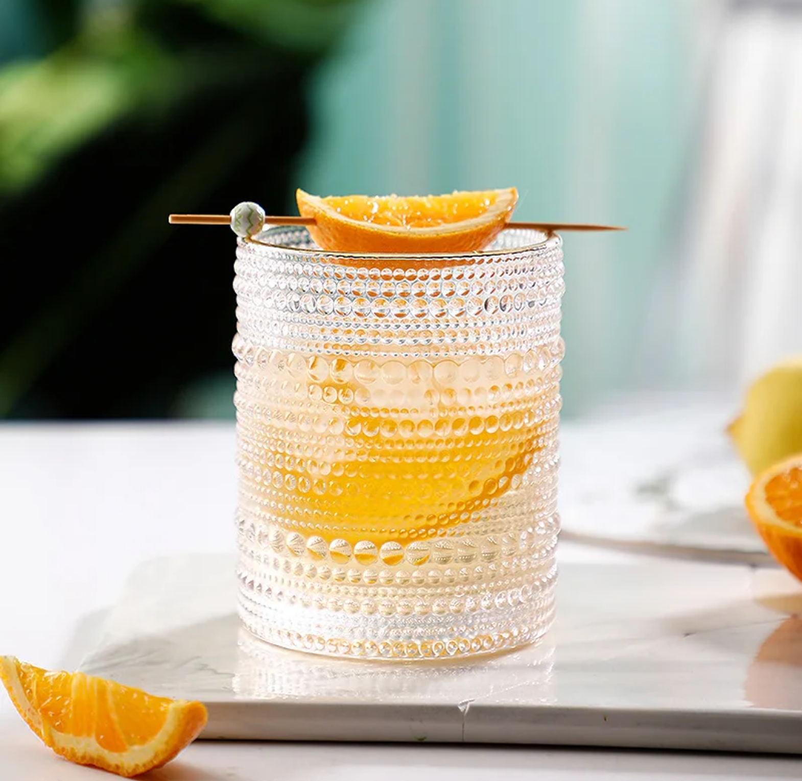 Bring a touch of retro elegance to your table with our Vintage Embossed Drinking Glasses, designed with a heavy base and beautiful textured detailing. Each glass holds up to 400ml, making it ideal for a variety of drinks—from refreshing juices to stylish cocktails and iced water.
