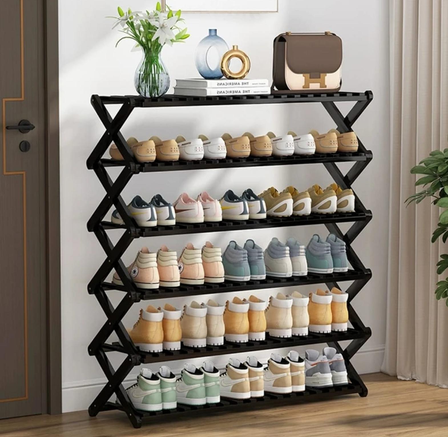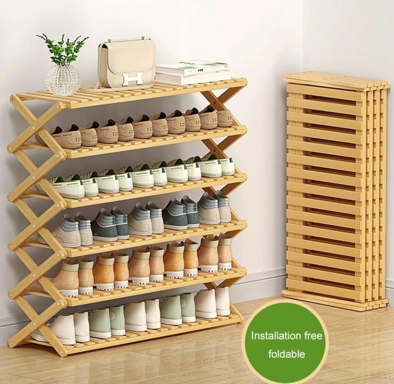 ✔ 6-tier bamboo shoe rack for maximum storage
