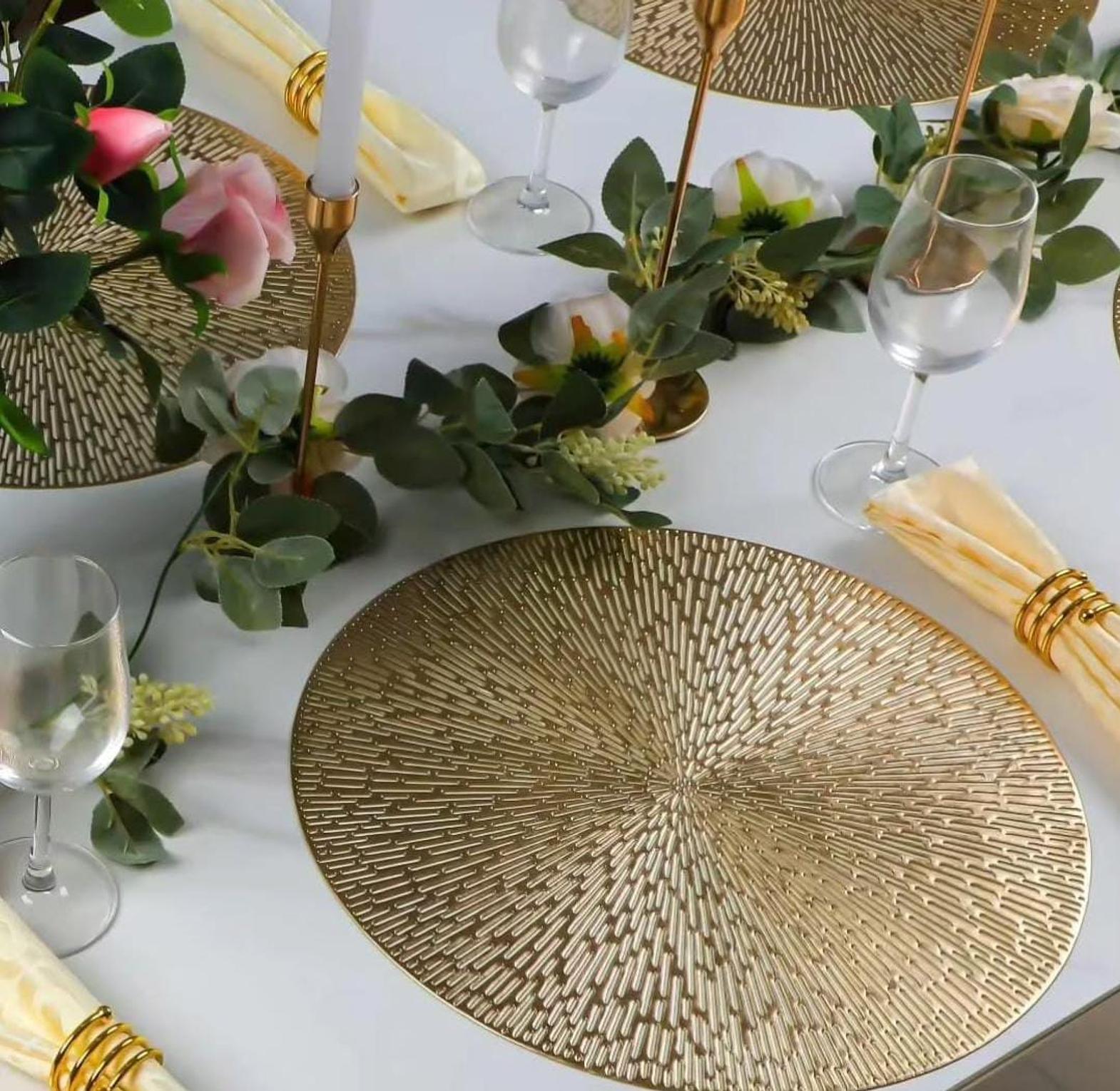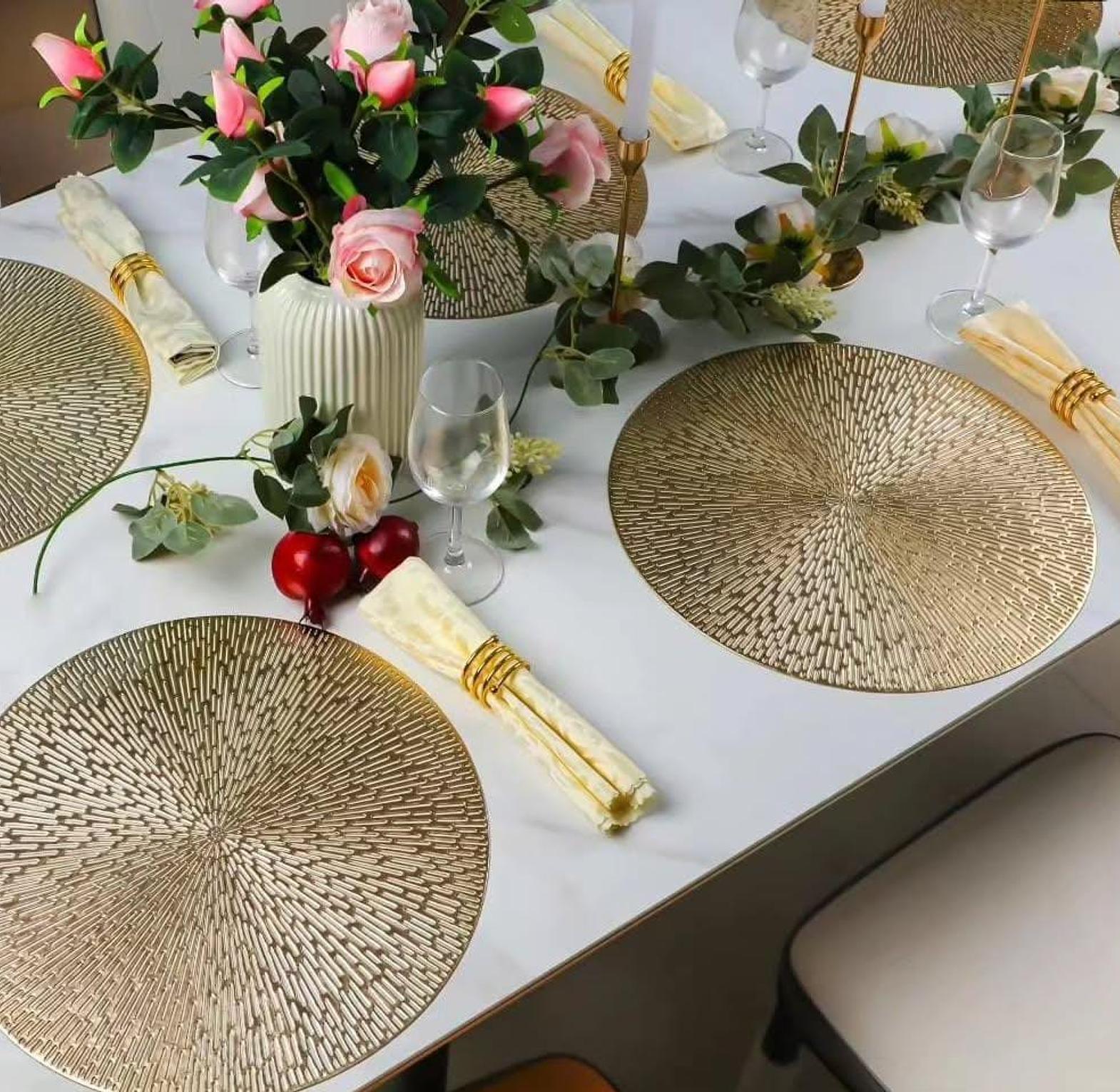 Our 6-piece PVC table mat set is designed to combine functionality with elegance, offering a practical way to protect your dining surface from heat, spills, and scratches. Made from high-quality, easy-to-clean PVC material, these mats are perfect for daily use or special occasions. The sleek, smooth texture enhances your table’s look while the non-slip backing ensures stability and security. Whether you're hosting a dinner party or enjoying a quiet meal, these mats come in versatile colors and designs that complement any décor. With their durability and convenience, these mats are a stylish and practical addition to any home.