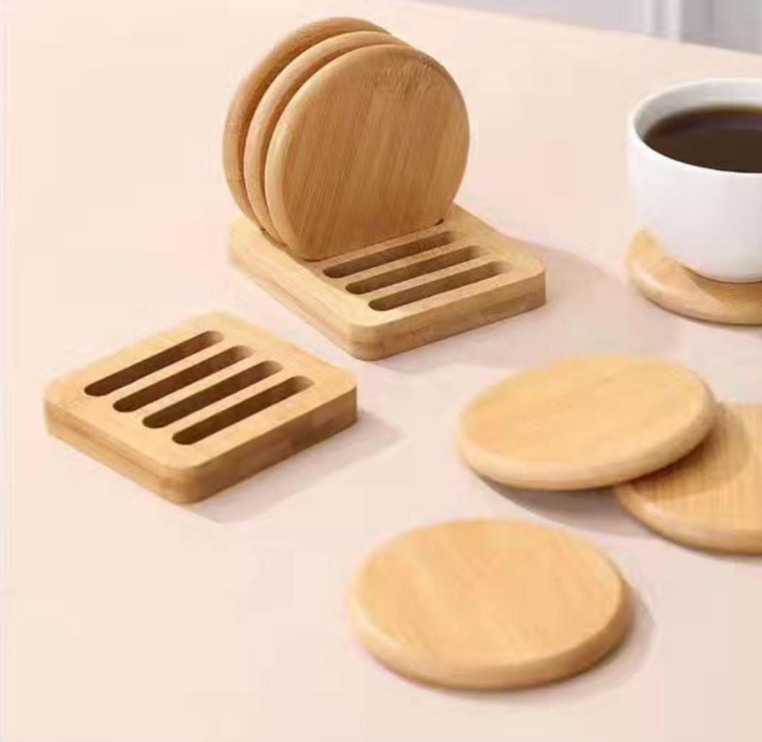 Enhance your table setting with this charming set of 6 wooden coasters, complete with a matching holder for neat storage. Each coaster is crafted from high-quality wood, showcasing natural grain patterns that bring warmth and sophistication to your decor. Perfect for protecting surfaces from moisture, heat, and scratches, these coasters are both functional and stylish. The included holder keeps them organized and easily accessible, making them ideal for daily use or entertaining guests. Durable and easy to clean, this set is a timeless addition to any home, combining practicality with a touch of rustic charm.
