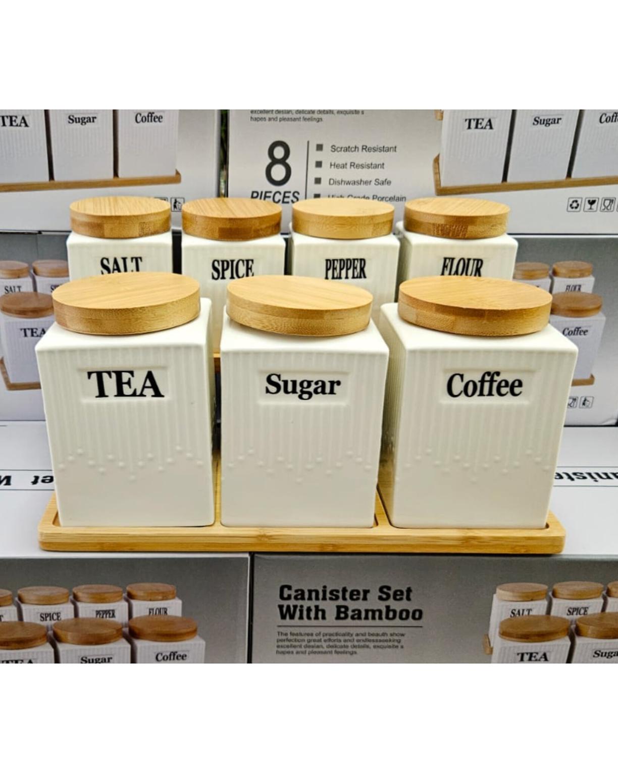 This 7-Piece Ceramic Kitchen Canister Set combines timeless style with everyday practicality. Crafted from high-quality ceramic, each canister is paired with a natural bamboo lid that provides an airtight seal to preserve freshness and prevent moisture. The matching bamboo stand keeps all canisters neatly arranged, saving counter space while adding a warm, modern touch to your kitchen décor. Ideal for storing tea, coffee, sugar, spices, or dry foods, this set is perfect for both daily use and stylish countertop display.