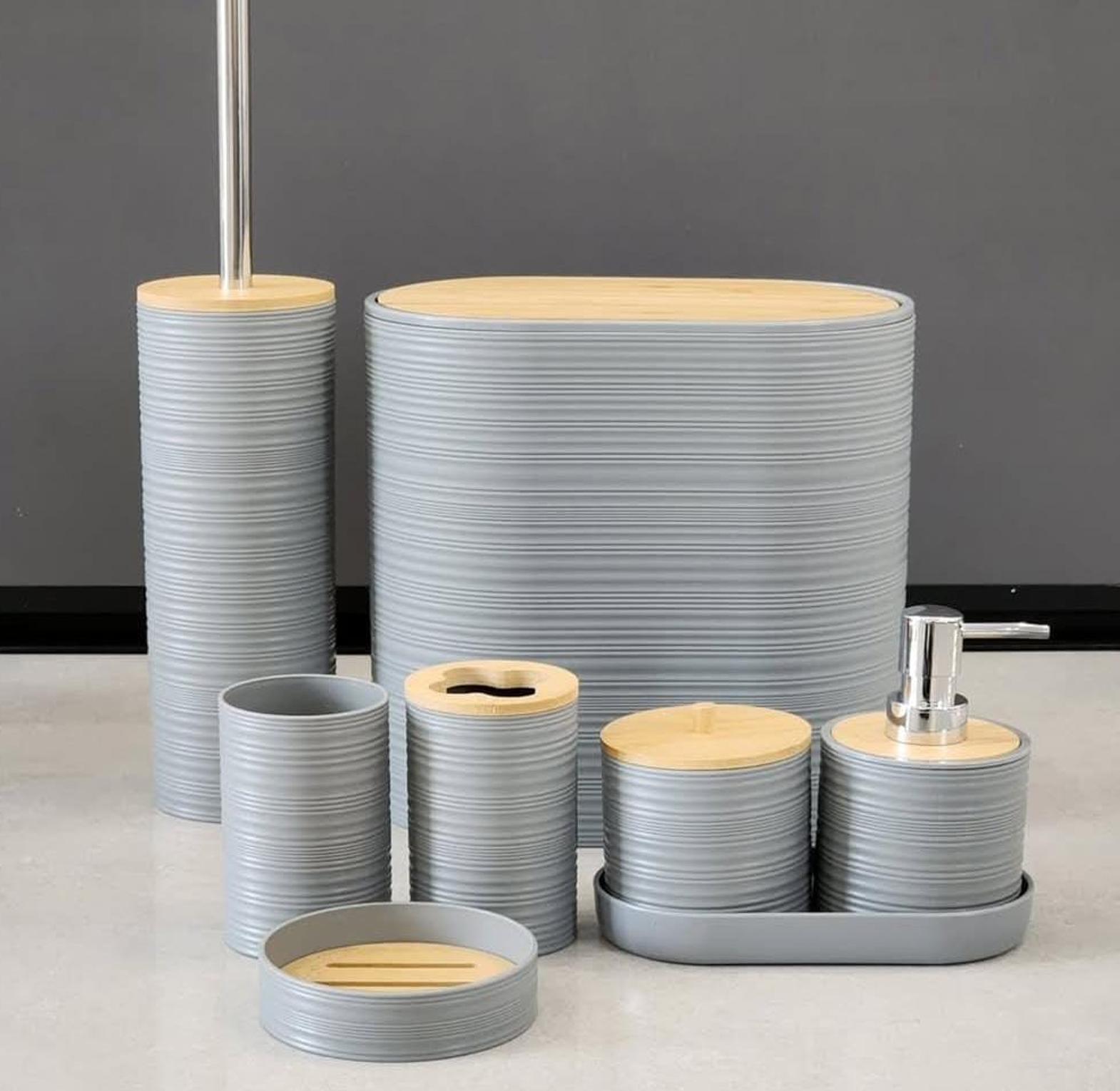 Refresh your bathroom with this elegant 8-piece accessories set, thoughtfully designed to bring order, style, and functionality to your daily routine. The set includes all the essentials: a waste bin, toilet brush with holder, soap dispenser, cotton pad holder, soap dish, tumbler, and toothbrush holder—all crafted to match seamlessly in design and color. Whether you're outfitting a new bathroom or upgrading your current setup, this set ensures every detail is covered while maintaining a cohesive, modern look. Durable, easy to clean, and space-conscious, it’s a one-stop solution for creating a well-organized and aesthetically pleasing bathroom. New stock just in—perfect for home, guest bathrooms, or gifting.