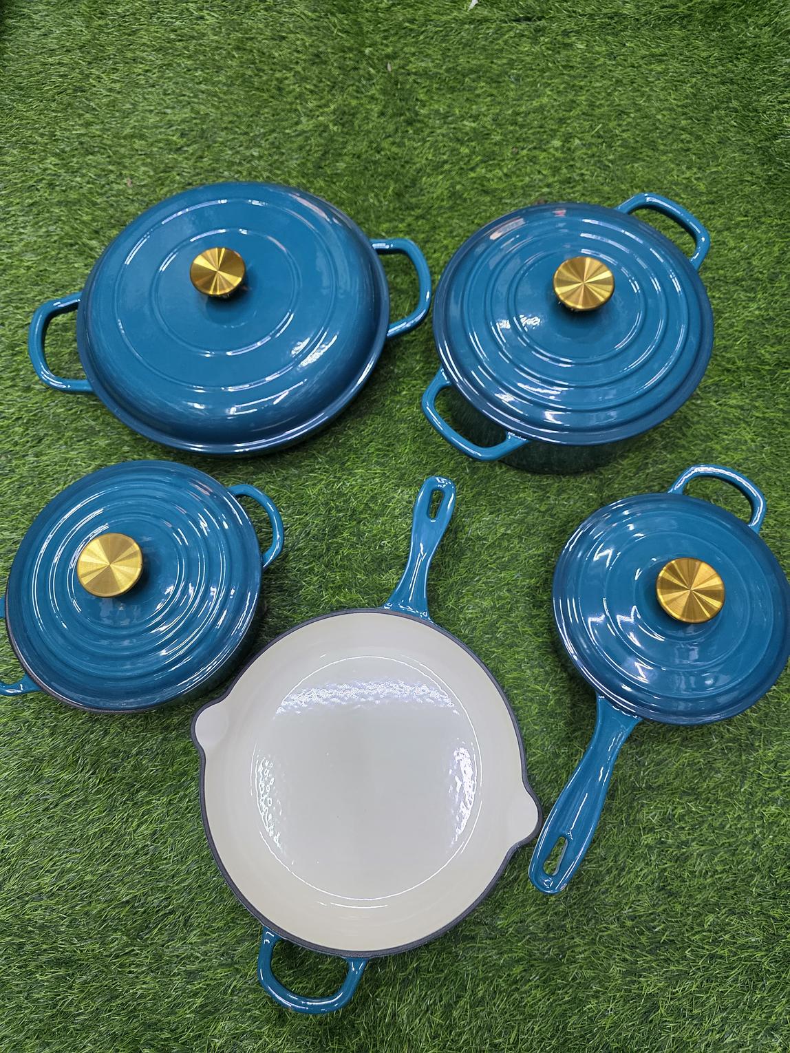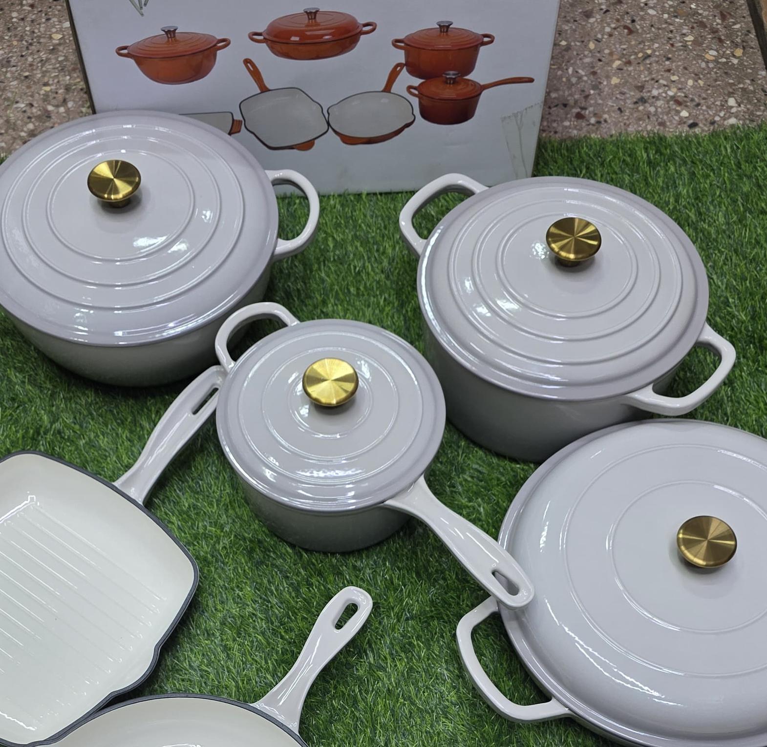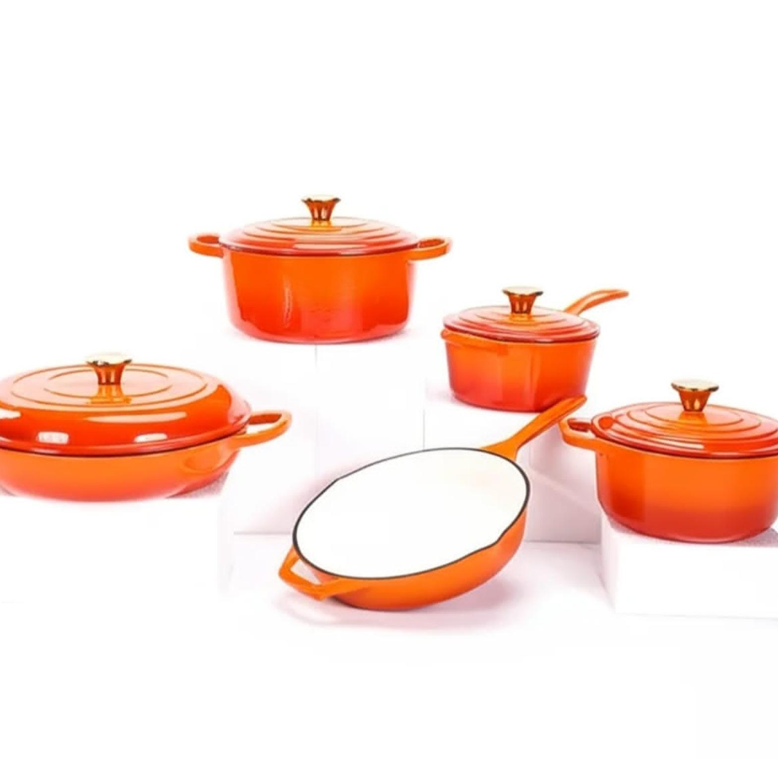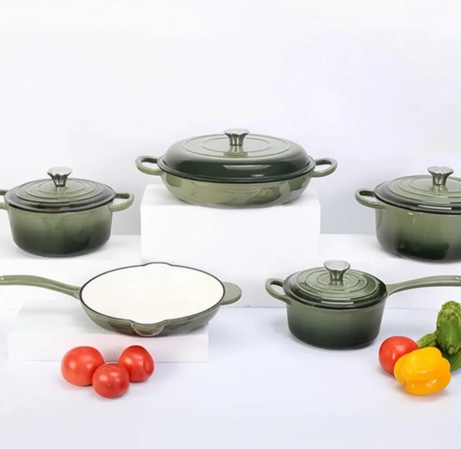 Upgrade your kitchen with this 9pcs Enamel Cast Iron Cookware Set, designed for both functionality and style. Crafted from high-quality, heavy cast iron, these pots ensure even heat distribution, making them perfect for slow cooking, baking, frying, and serving directly at the table. The enamel coating not only enhances durability but also makes them easier to clean and maintain.