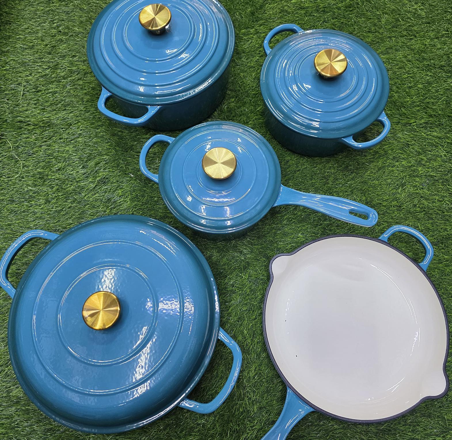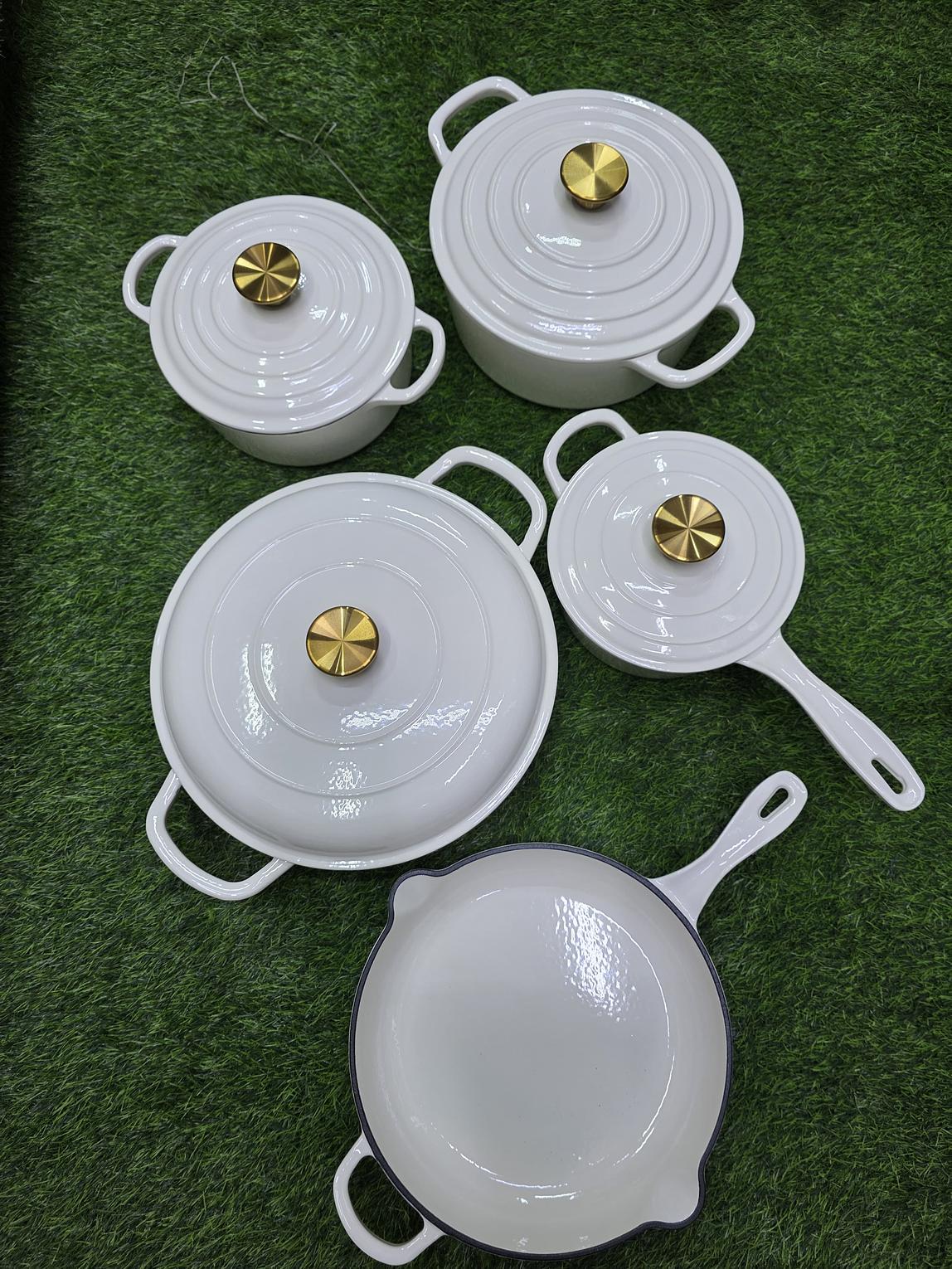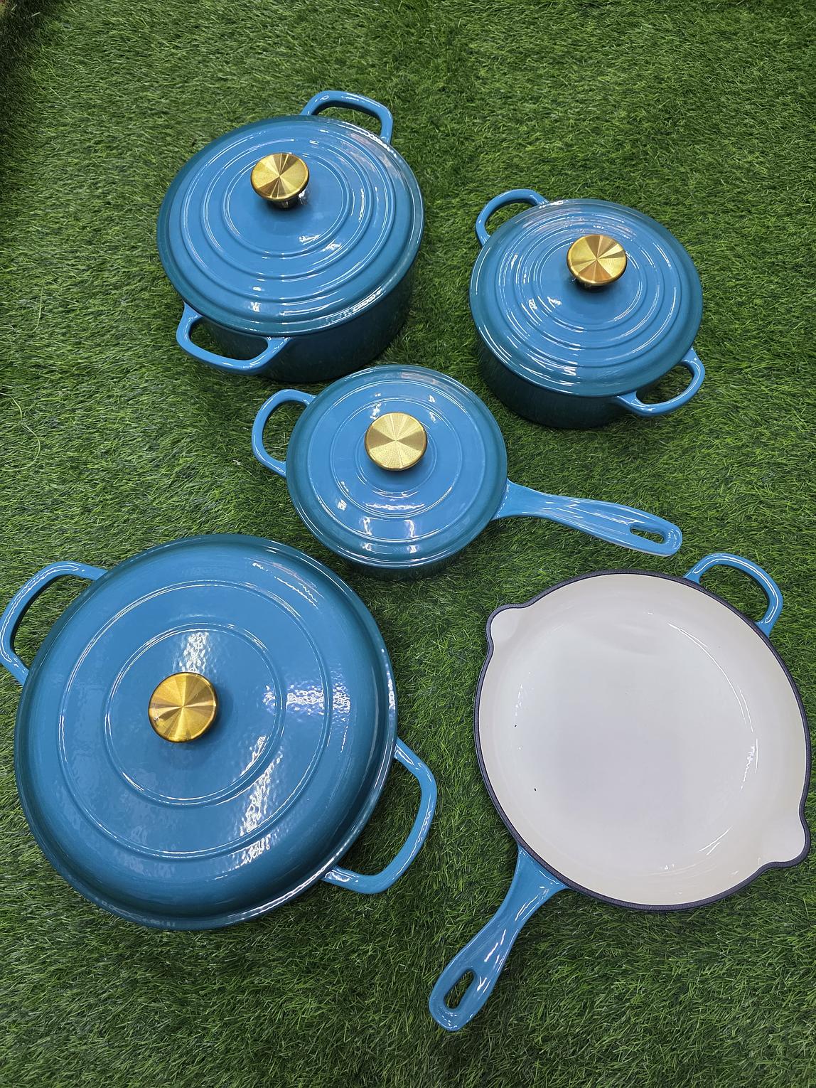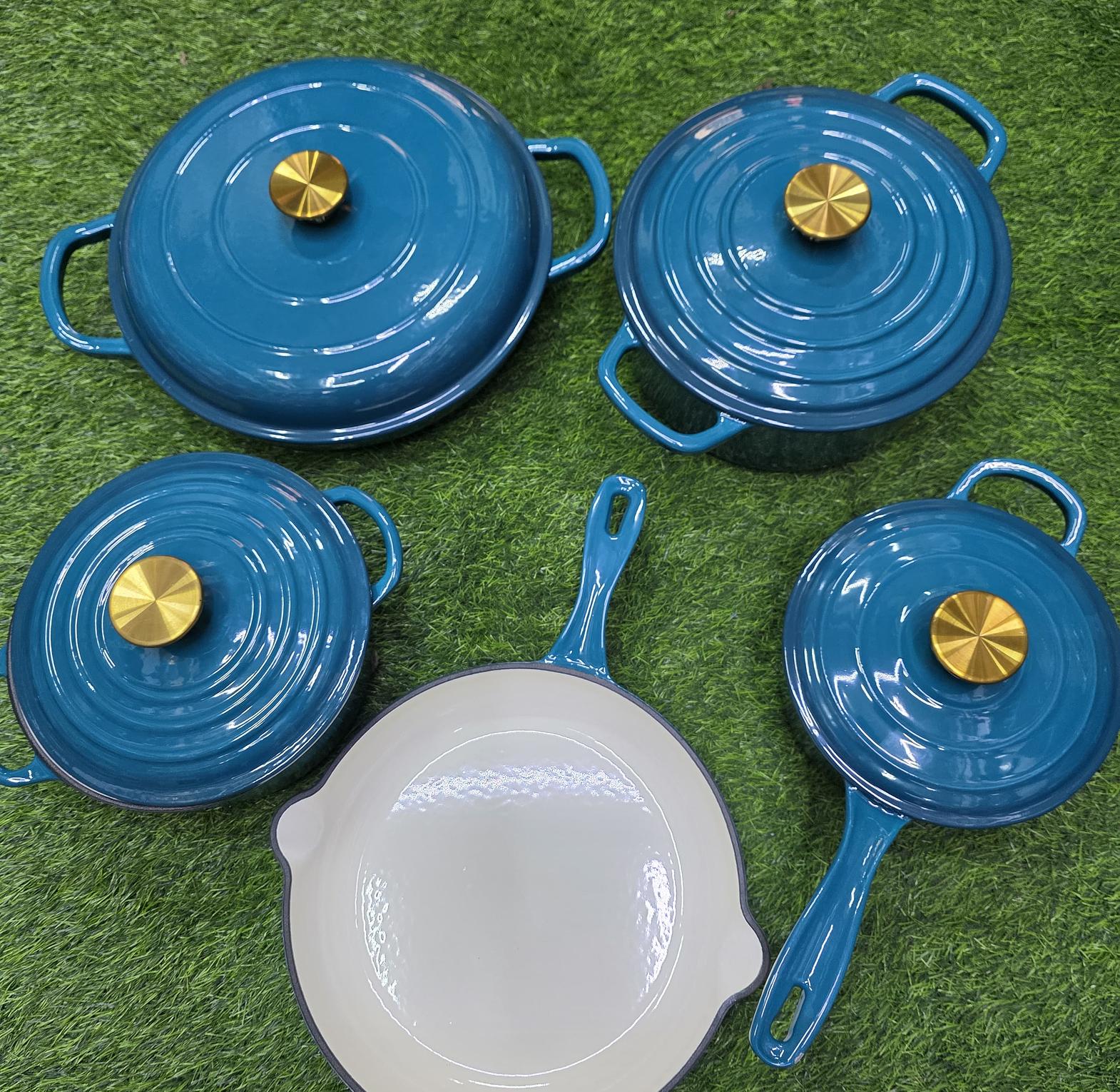 Upgrade your kitchen with this 9pcs Enamel Cast Iron Cookware Set, designed for both functionality and style. Crafted from high-quality, heavy cast iron, these pots ensure even heat distribution, making them perfect for slow cooking, baking, frying, and serving directly at the table. The enamel coating not only enhances durability but also makes them easier to clean and maintain.