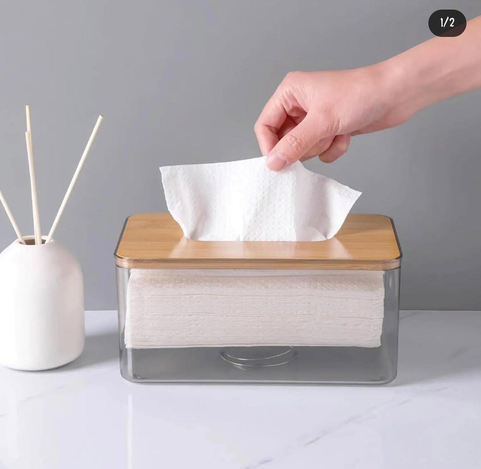 This acrylic serviette box with a wooden lid is a stylish and practical accessory, perfect for keeping your napkins neatly organised and easily accessible. The transparent acrylic body offers a sleek, contemporary look while allowing you to quickly check the serviette levels, eliminating the hassle of running out unexpectedly. Topped with a beautifully crafted wooden lid, it adds a warm, natural touch to balance the modern design, making it suitable for both casual and formal dining settings. Durable, easy to clean, and designed to complement any decor, this serviette box is the ideal choice for those who value functionality and timeless style.