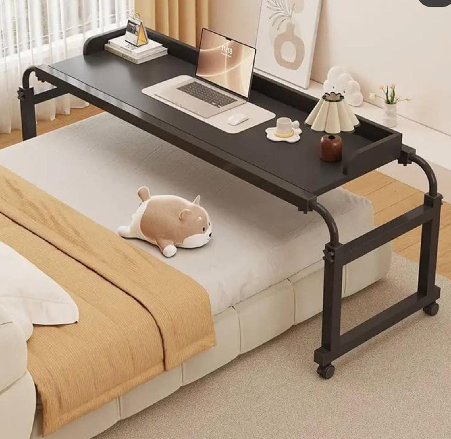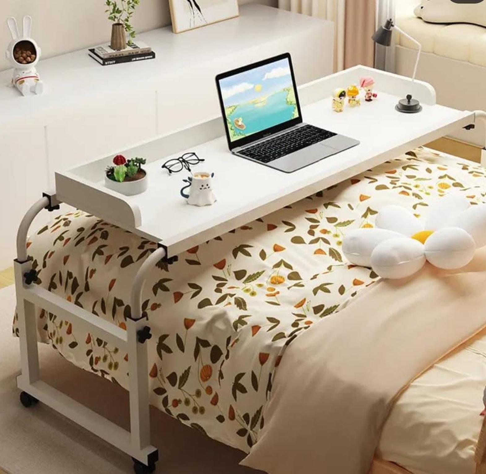 Designed for flexibility and convenience, this adjustable over-bed laptop desk is the ideal companion for home offices, recovery periods, or simply enjoying a comfortable workspace in bed. Its height-adjustable frame accommodates various bed or couch heights, while the spacious tabletop supports laptops, notebooks, or meals with ease. Equipped with lockable caster wheels, it glides effortlessly across floors and stays securely in place when needed. Whether you're working remotely, caring for someone with limited mobility, or just want a break from the desk chair, this mobile workstation combines functionality with ergonomic comfort to support your daily routines.