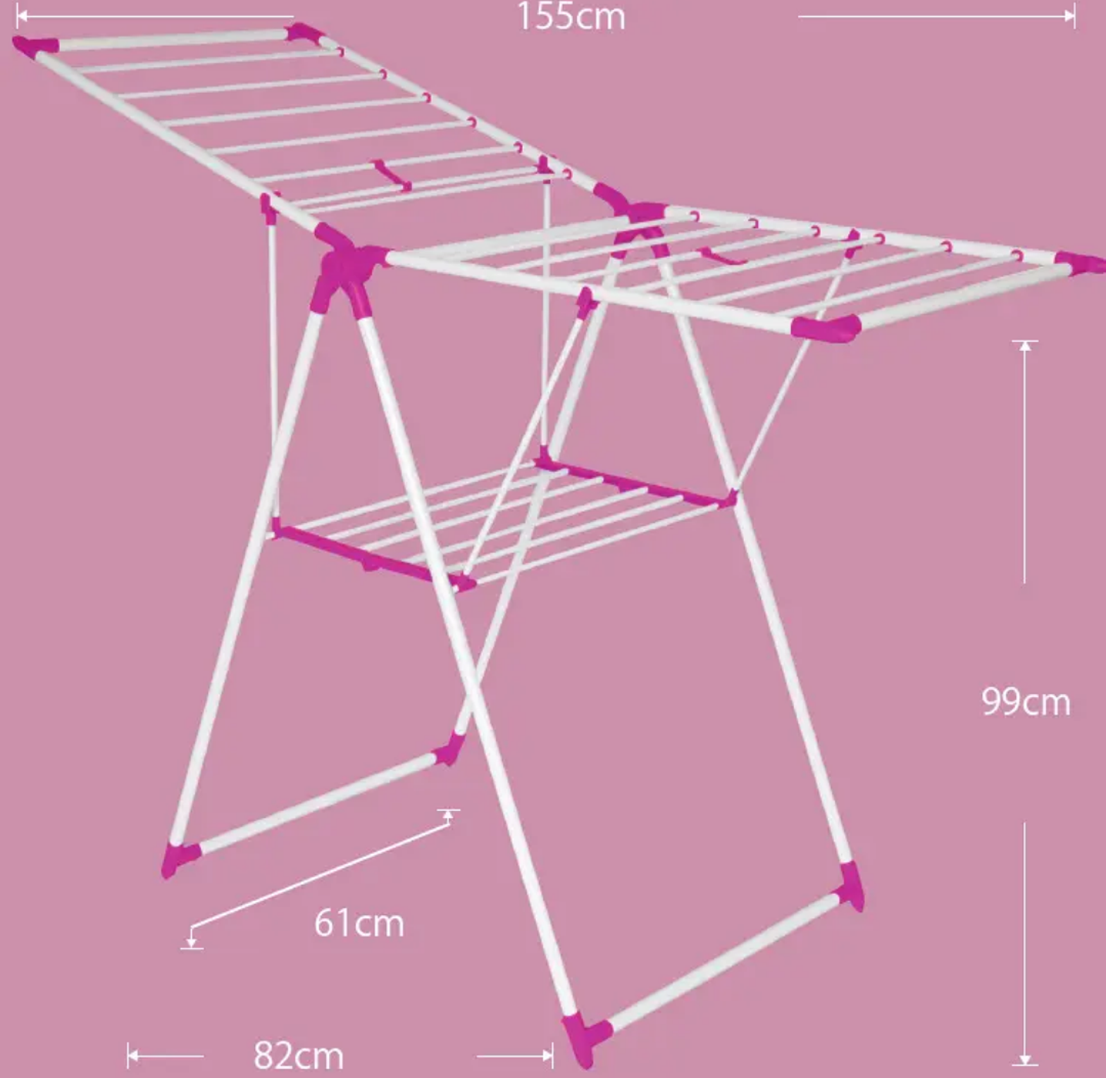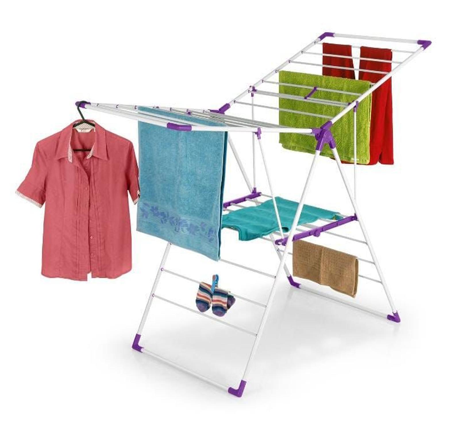 When not in use, the foldable frame makes it easy to store without taking up valuable space. Despite its compact footprint, the rack offers ample drying surface for family-sized laundry loads.