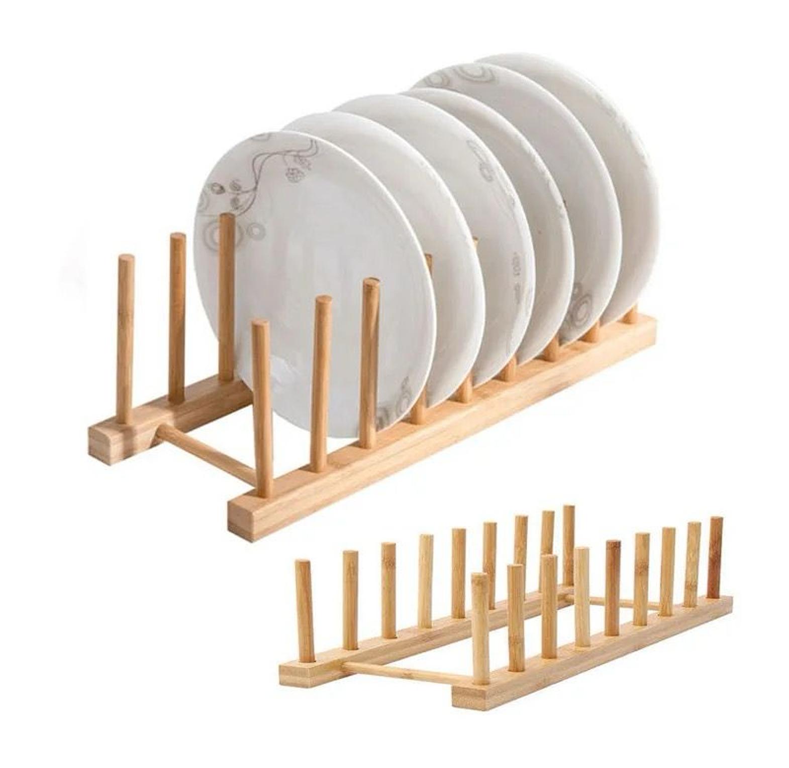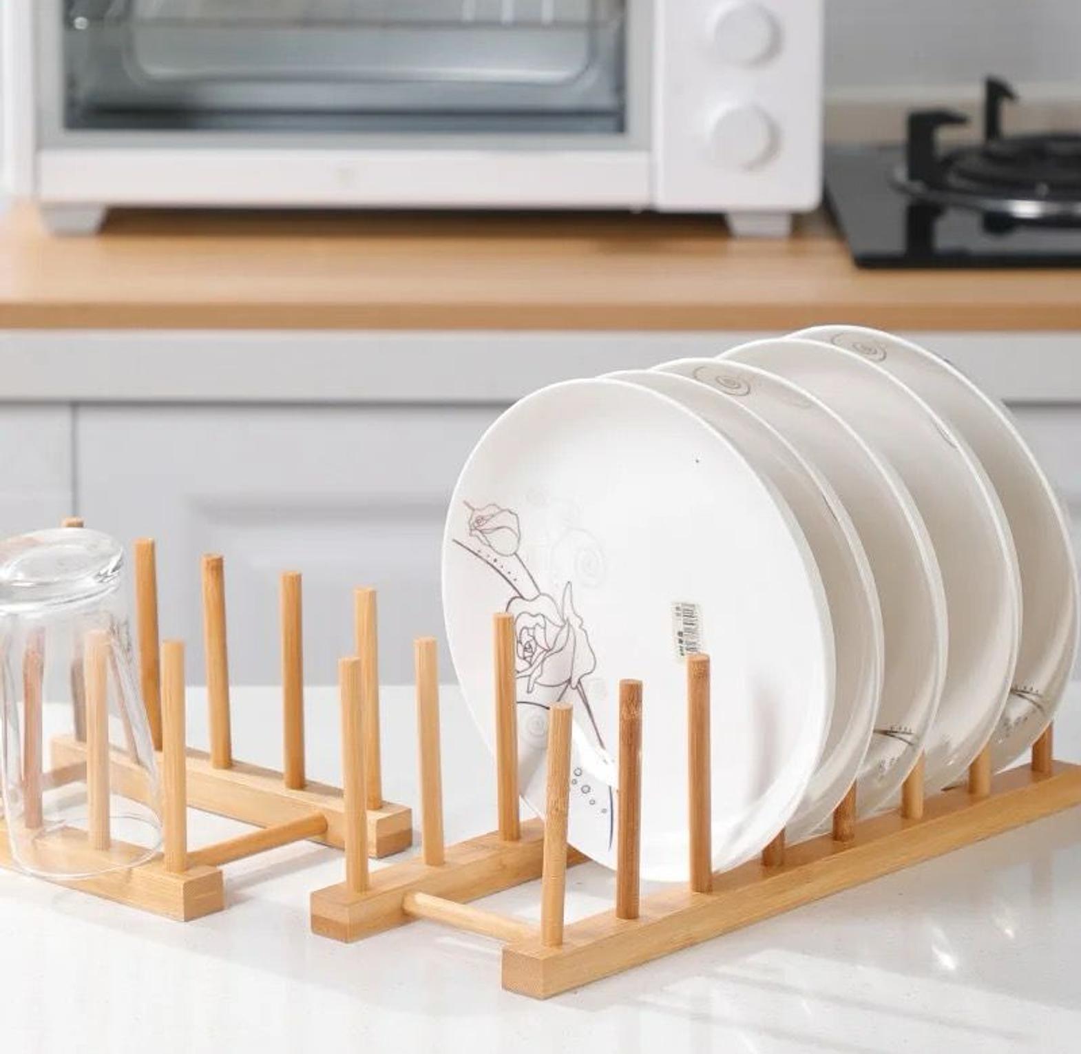 Declutter your kitchen with our eco-friendly Bamboo Plate / Pot Lid Organizer. Crafted from sturdy, natural bamboo, it keeps your plates, lids, and chopping boards upright and easy to access while saving counter or cabinet space. Its simple, natural finish blends seamlessly into any kitchen décor, offering both style and practicality.