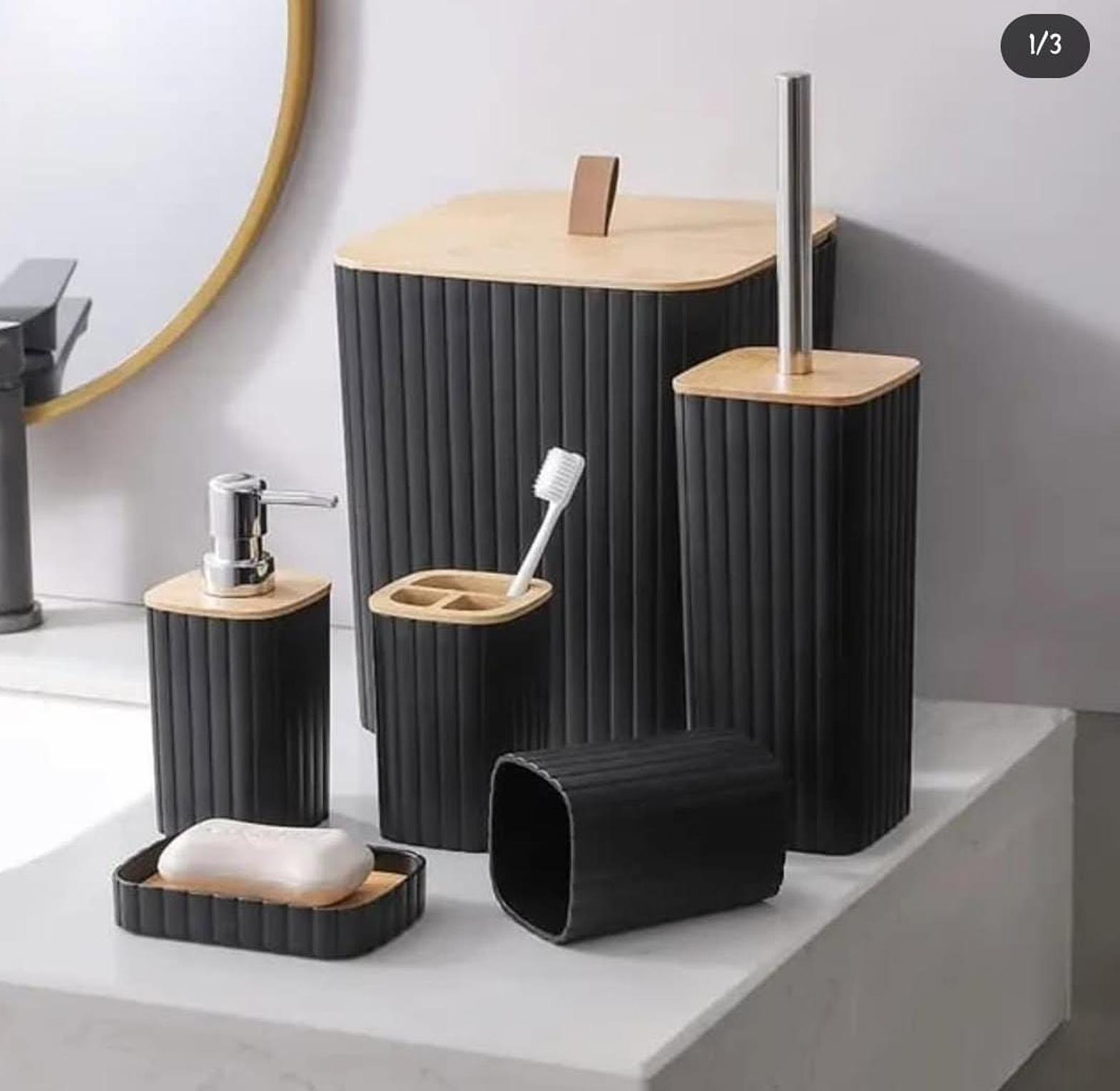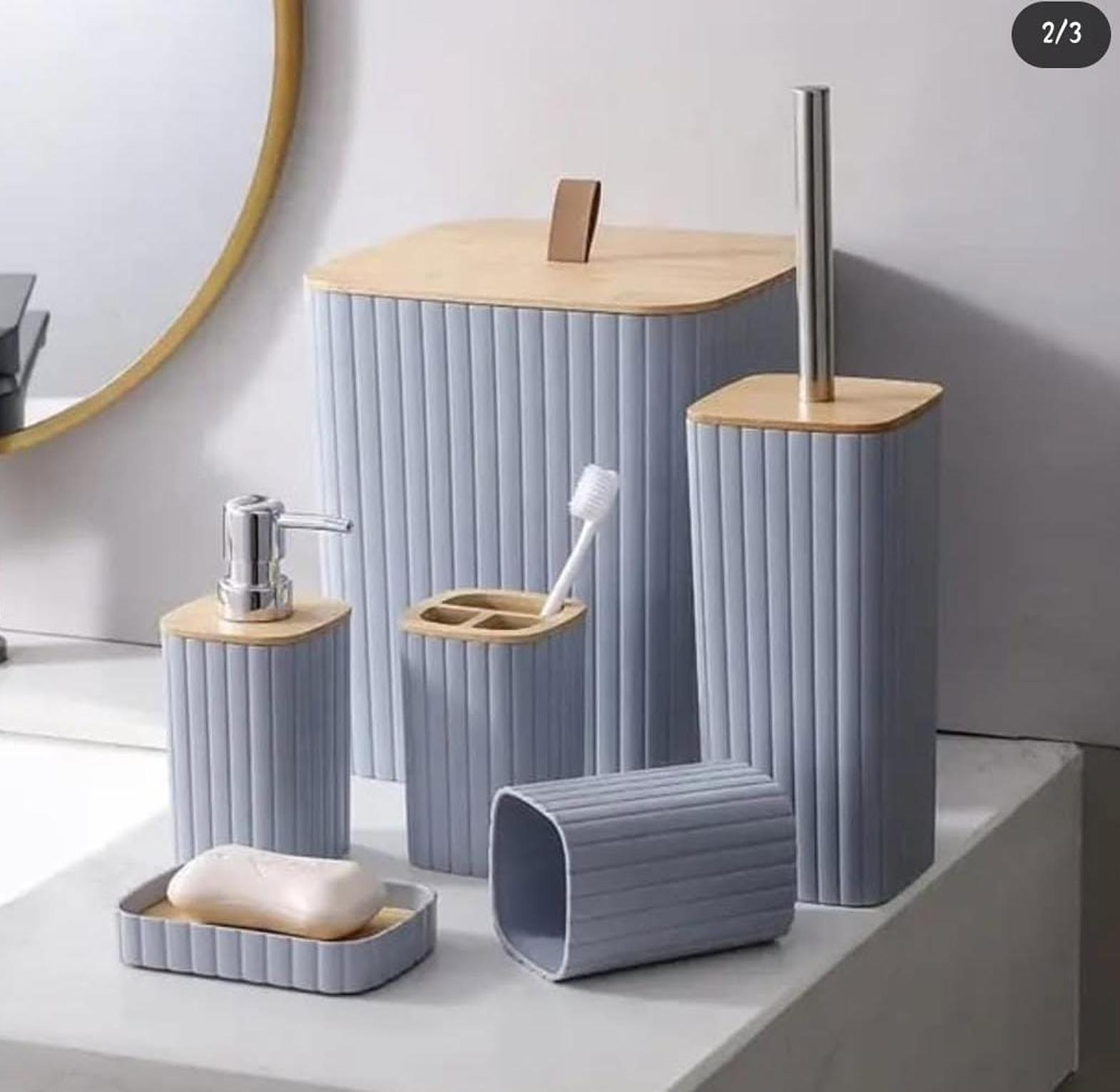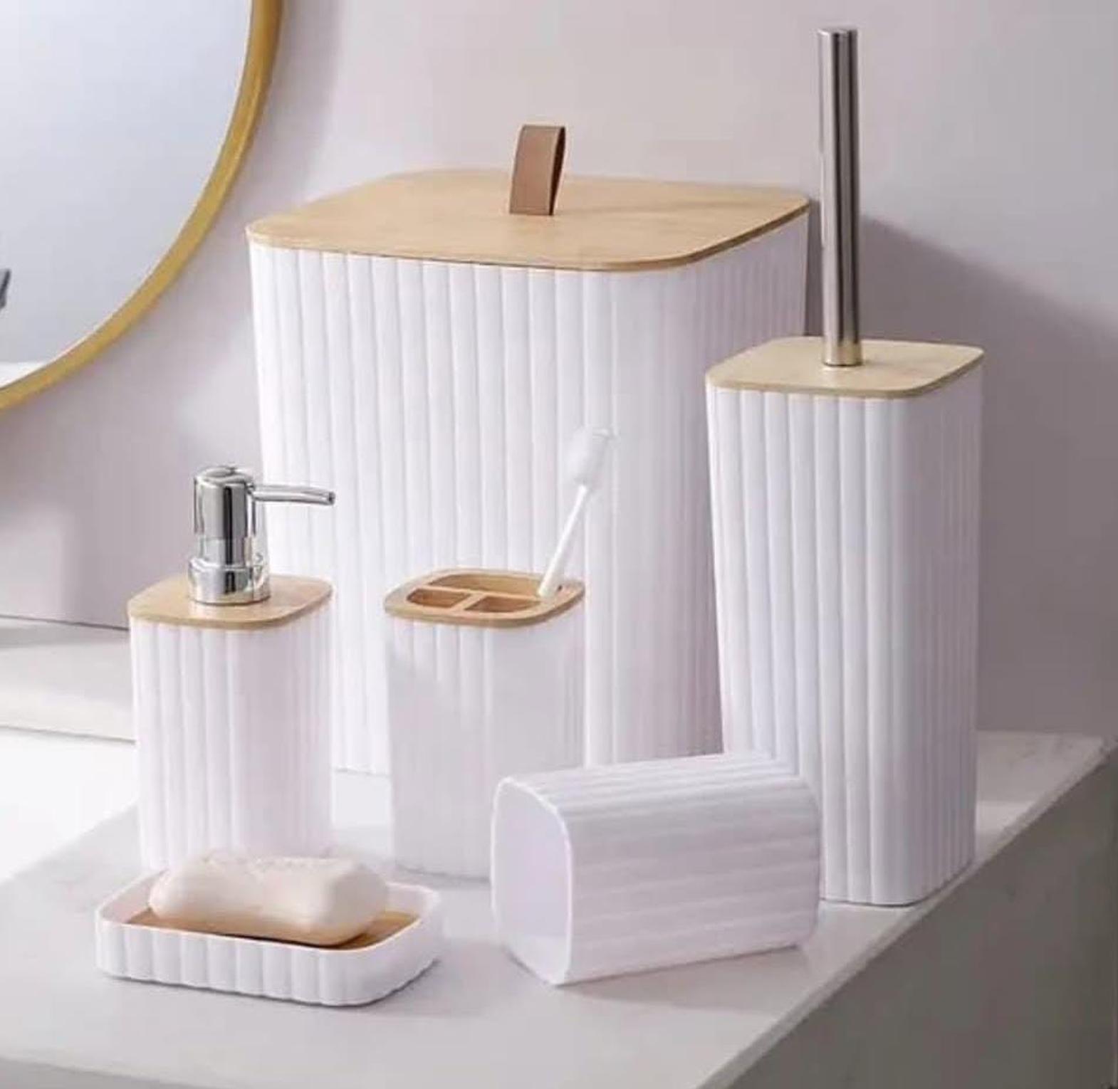 This 6-piece bathroom accessories set is thoughtfully designed to bring functionality, hygiene, and a cohesive look to your bathroom space. The set includes a waste bin for tidy disposal, a refillable soap dispenser for liquid soap or lotion, a toothbrush holder to keep brushes upright and organized, a soap dish to prevent mess at the sink, a tumbler for rinsing or storage, and a toilet brush with its own discreet holder for maintaining cleanliness. Made from durable, easy-to-clean materials, each item in the set complements the others in both design and color, giving your bathroom a polished, coordinated appearance. Whether you're setting up a new home or refreshing your current space, this set combines convenience and style in one practical package.