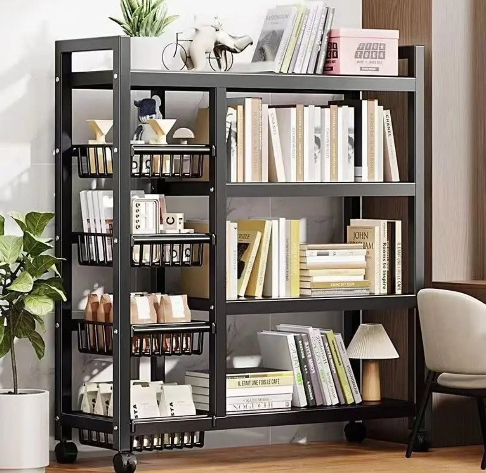 Its multi-tier design offers ample space for vegetables, fruits, kitchen appliances, and pantry essentials, while the side basket compartments provide convenient produce storage and easy access. The smooth-rolling wheels allow effortless movement around your kitchen or pantry.