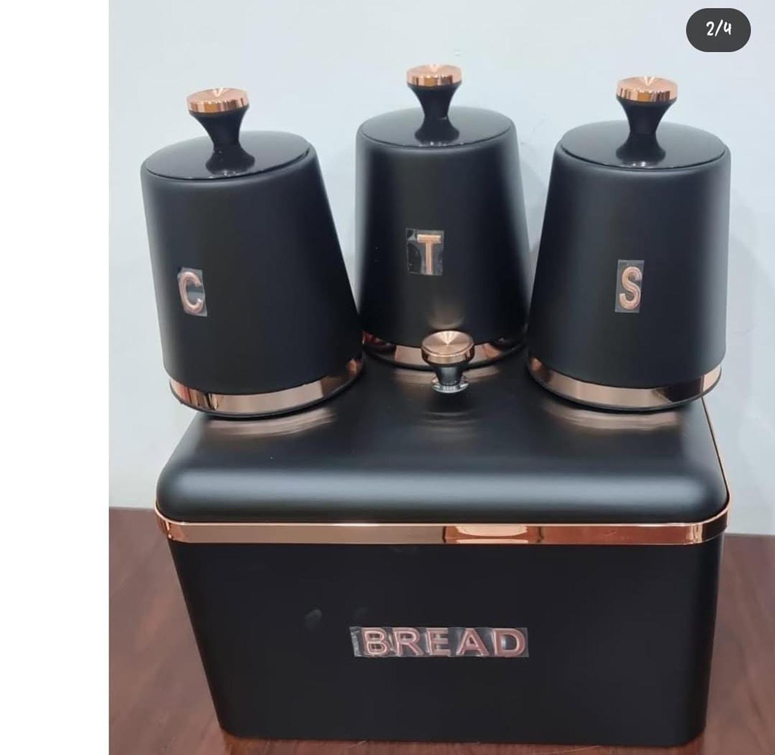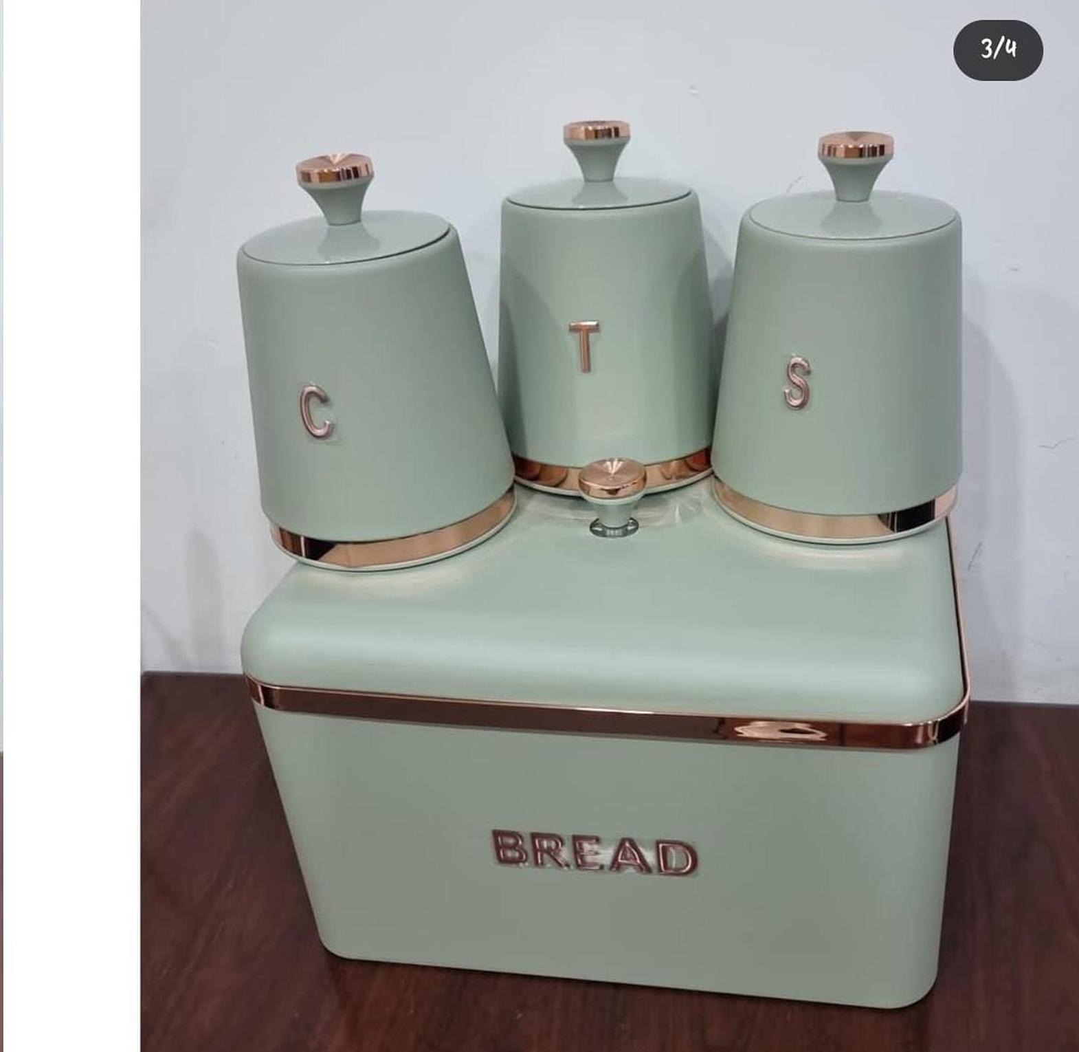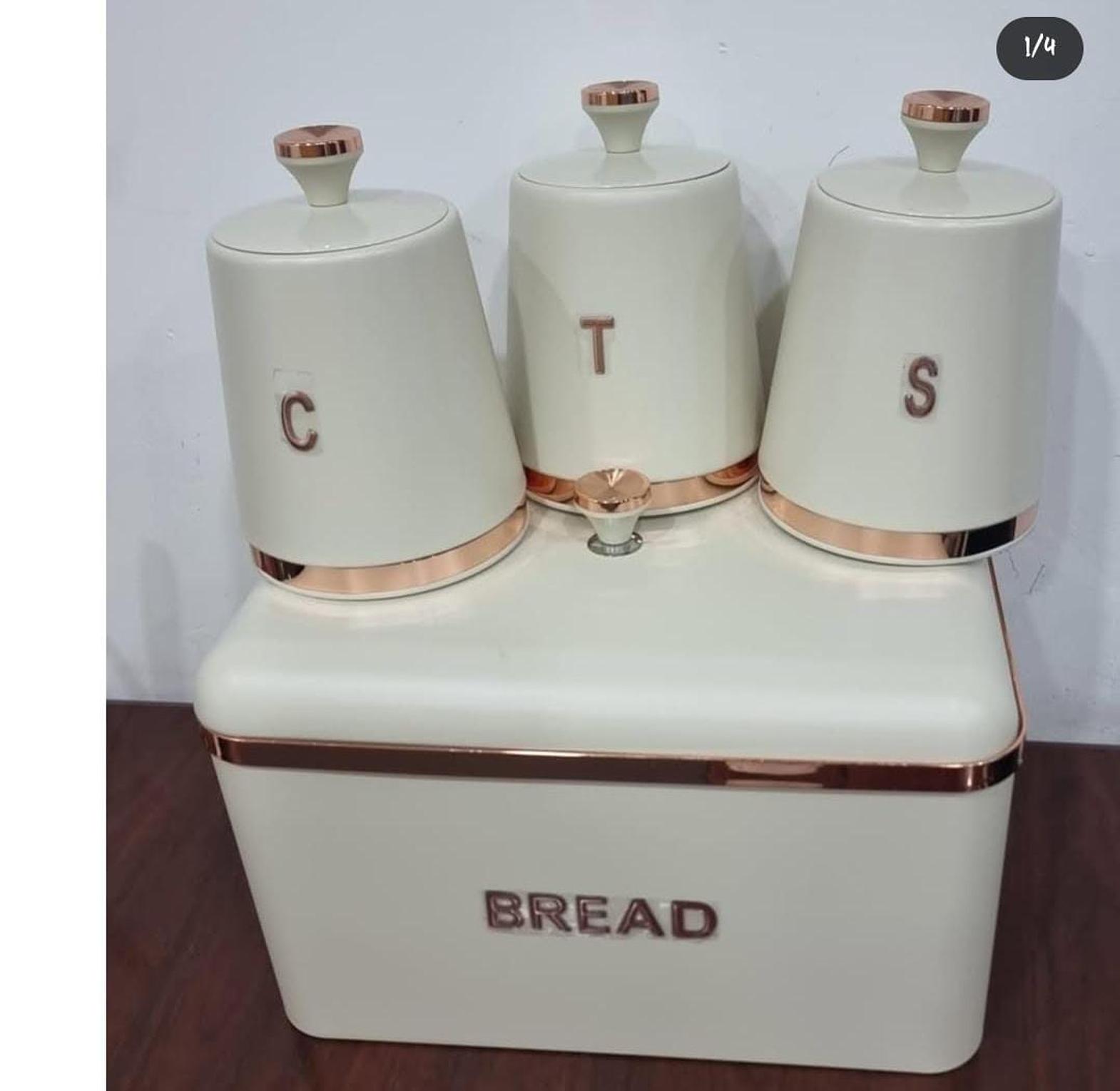 Elevate your kitchen storage with this beautifully coordinated bread bin and canister set, perfect for keeping your essentials fresh and neatly organized. The spacious bread bin provides ample room for loaves, rolls, and pastries, while the matching canisters are ideal for storing tea, coffee, sugar, or other dry goods. Crafted from durable materials with an airtight design, these containers help maintain freshness while adding a touch of elegance to your countertop. Whether you prefer a classic or contemporary look, this set blends functionality with style, making your kitchen both tidy and inviting.